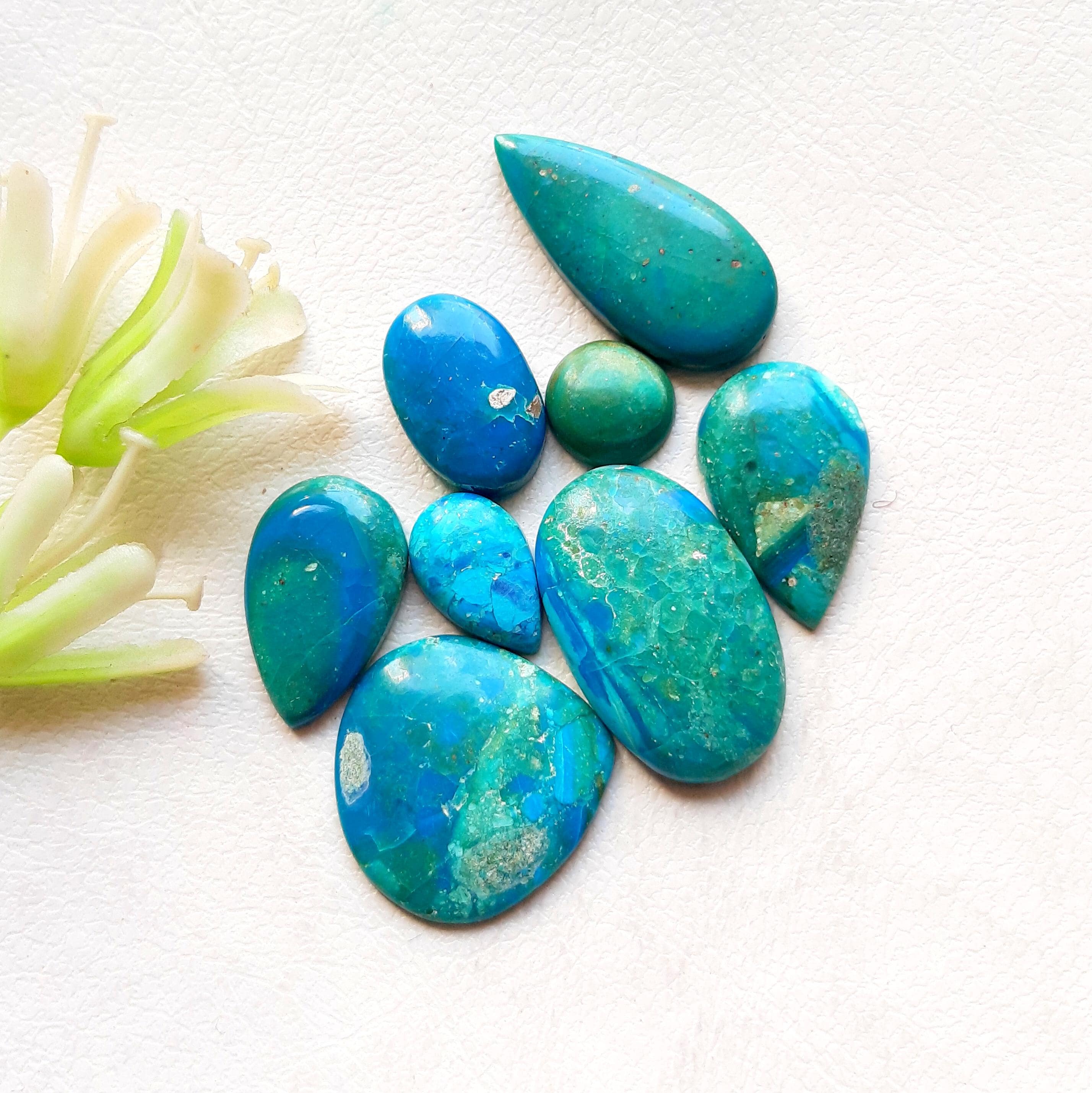 NEW Chilean Opal Cabochon Loose Gemstone 8 Pieces Lot For Jewelry Making, AAA+ Natural Chilean Opal Flatback Lot For Handmade Jewelry