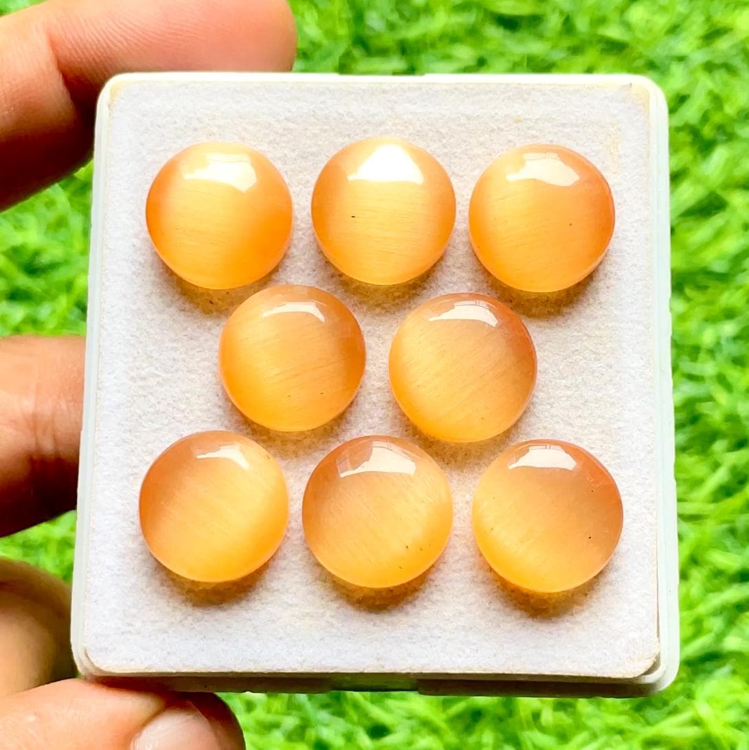 Vibrant Yellow Color Monalisa 14 MM Round Shape Smooth Cabochon With Flat Back Gemstone 6 Pieces Lot, AAA+ Monalisa For Handmade Jewelry