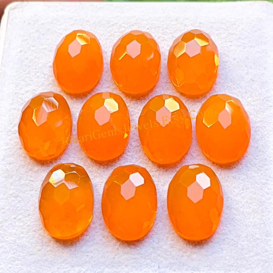 Orange Opal Quartz 10x14 MM Oval Shape Honeycomb Cut With Flat Back Gemstone 10 Pieces Lot, AAA+ Orange Opal Quartz Used For Jewelry Making