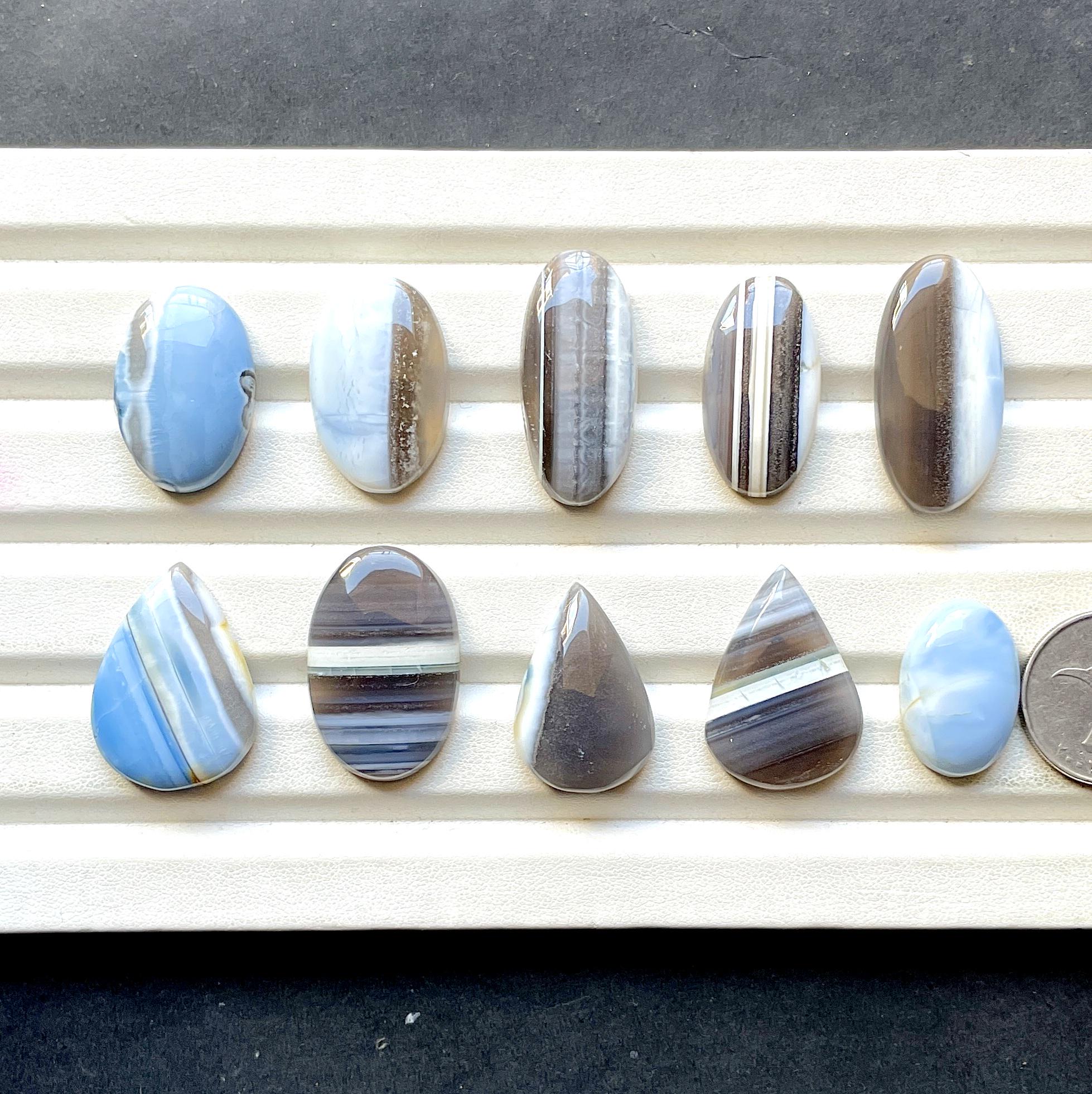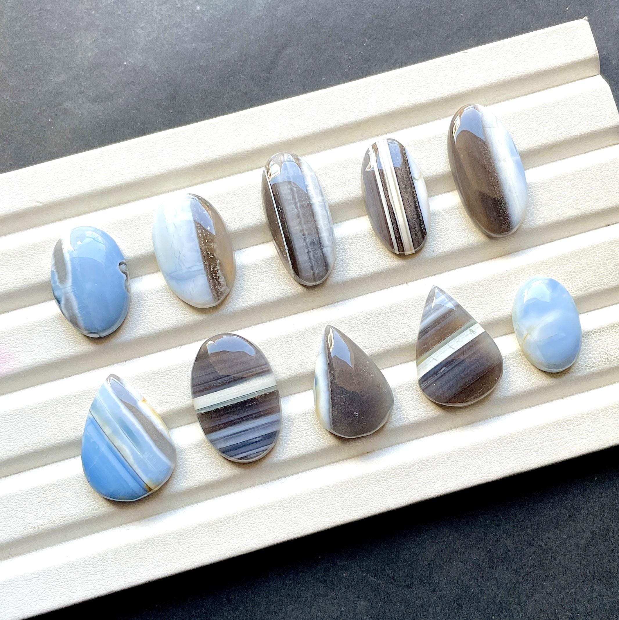 Banded Blue Owyhee Opal Cabochon Loose Gemstone For Jewelry Making, Natural Blue Owyhee Opal Gemstone For Handmade Jewelry