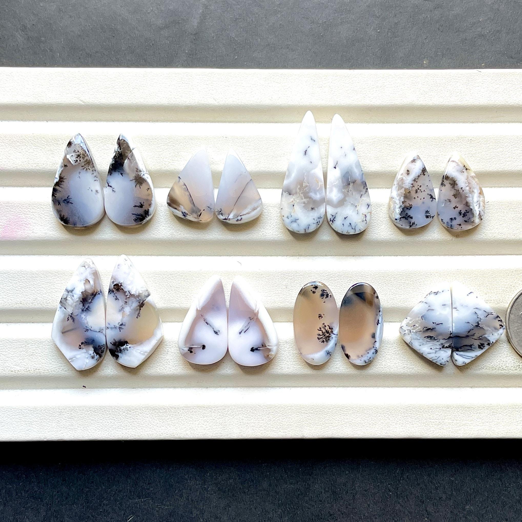Beautiful Dendritic Opal Pair Cabochon Loose Gemstone For Jewelry, AAA+ Natural Dendritic Opal Matching Pair For Earrings