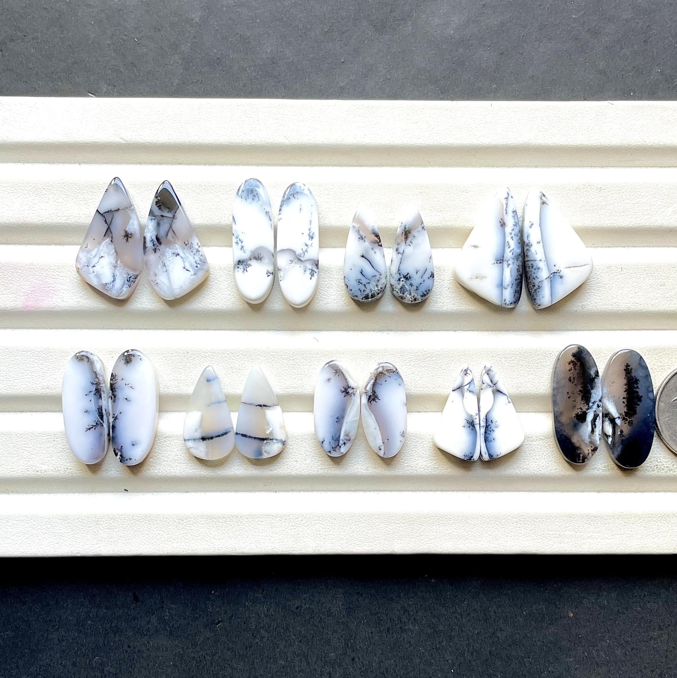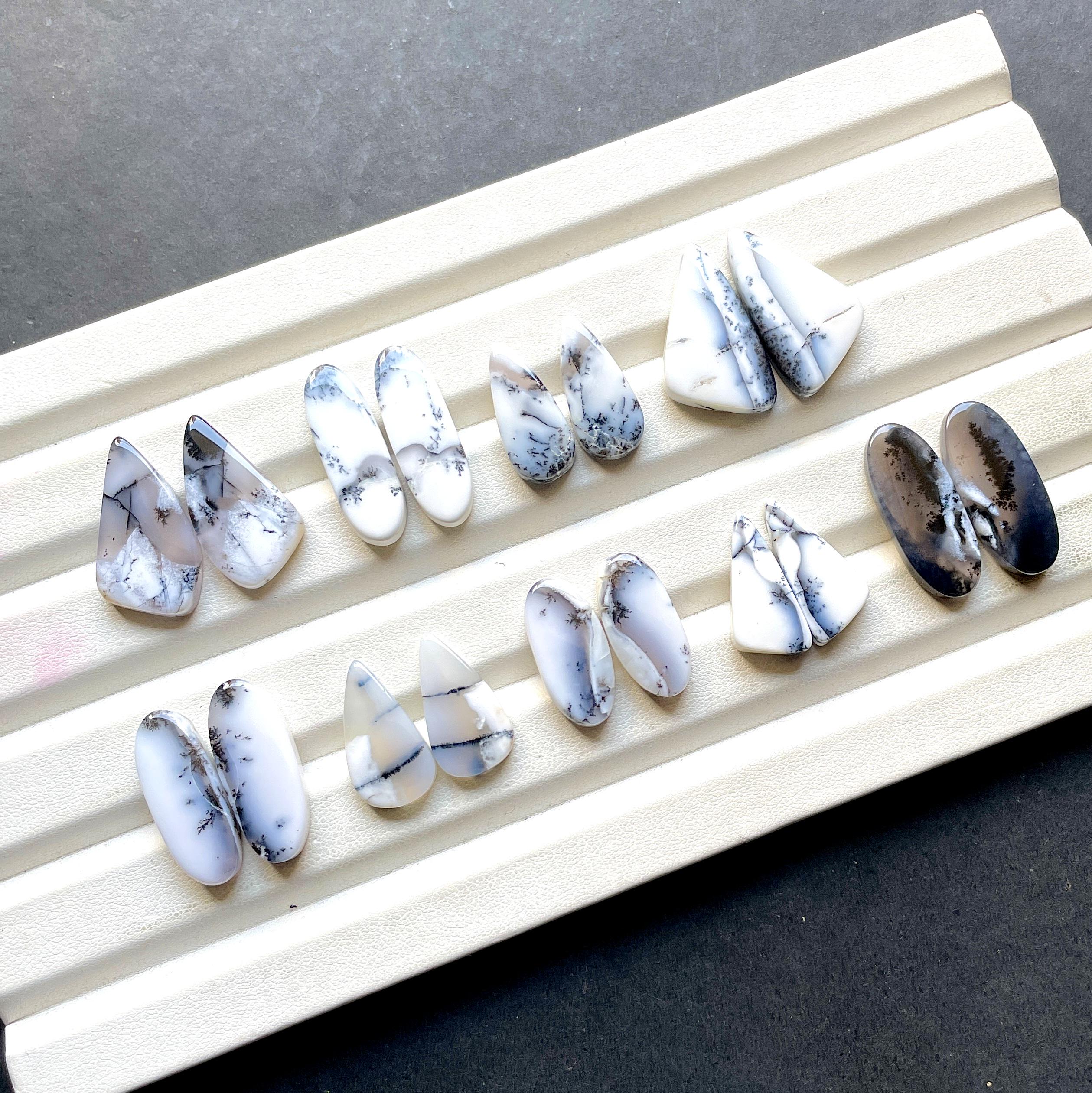 Beautiful Dendritic Opal Pair Cabochon Loose Gemstone For Jewelry, AAA+ Natural Dendritic Opal Matching Pair For Earrings