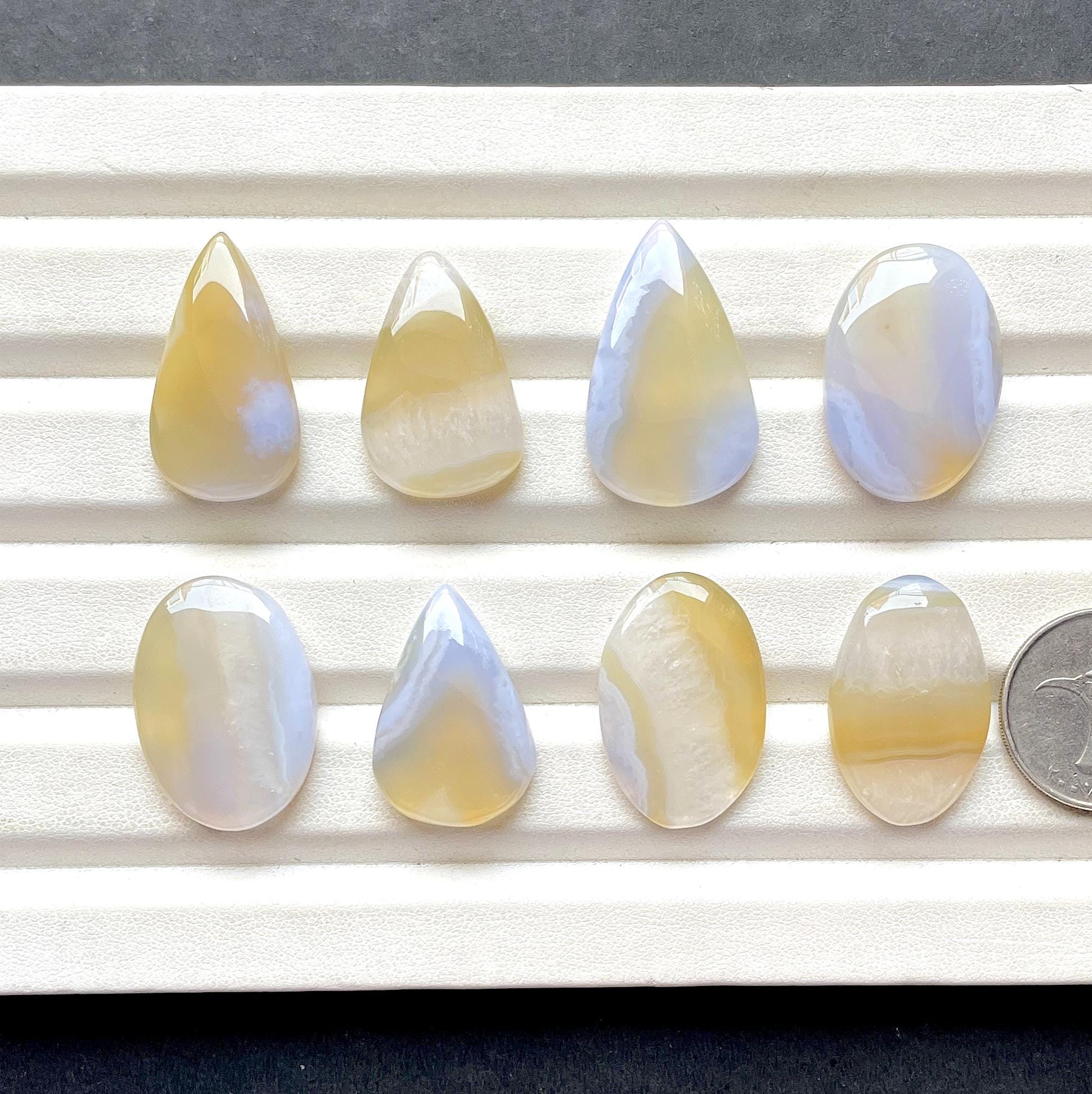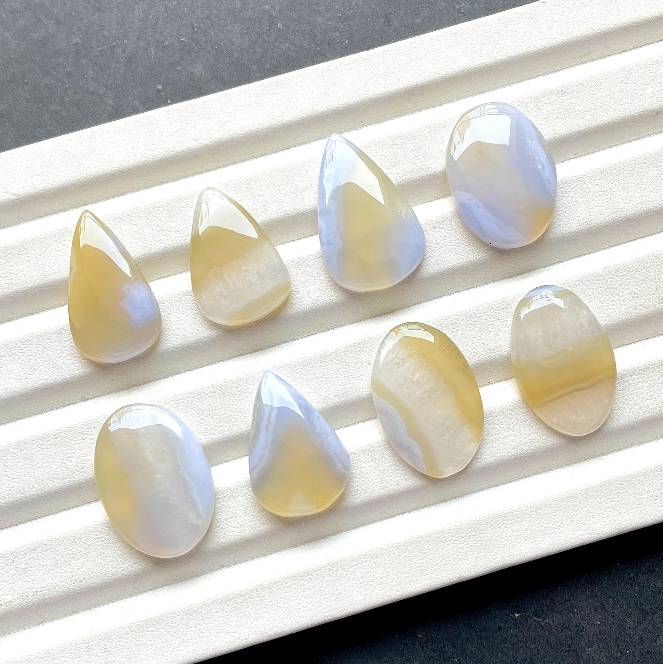 Beautiful Bio Blue Lace Agate With Yellow Cabochon Gemstone For Jewelry Making, AAA+ Natural Bio Blue Lace Agate For Wire Wrap