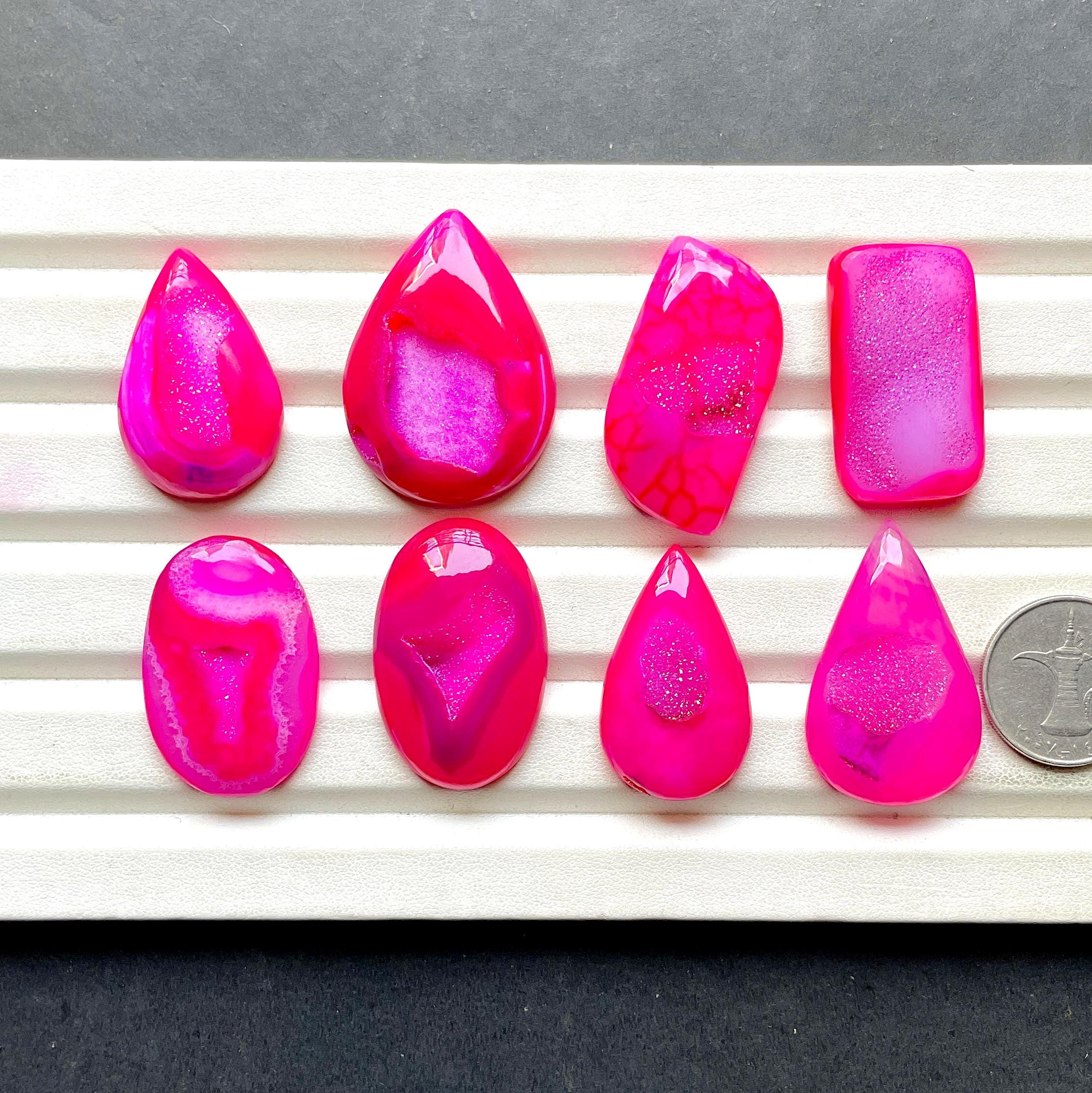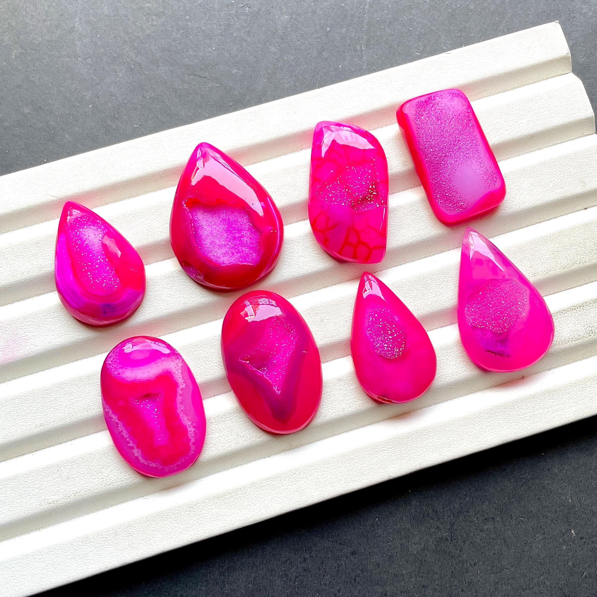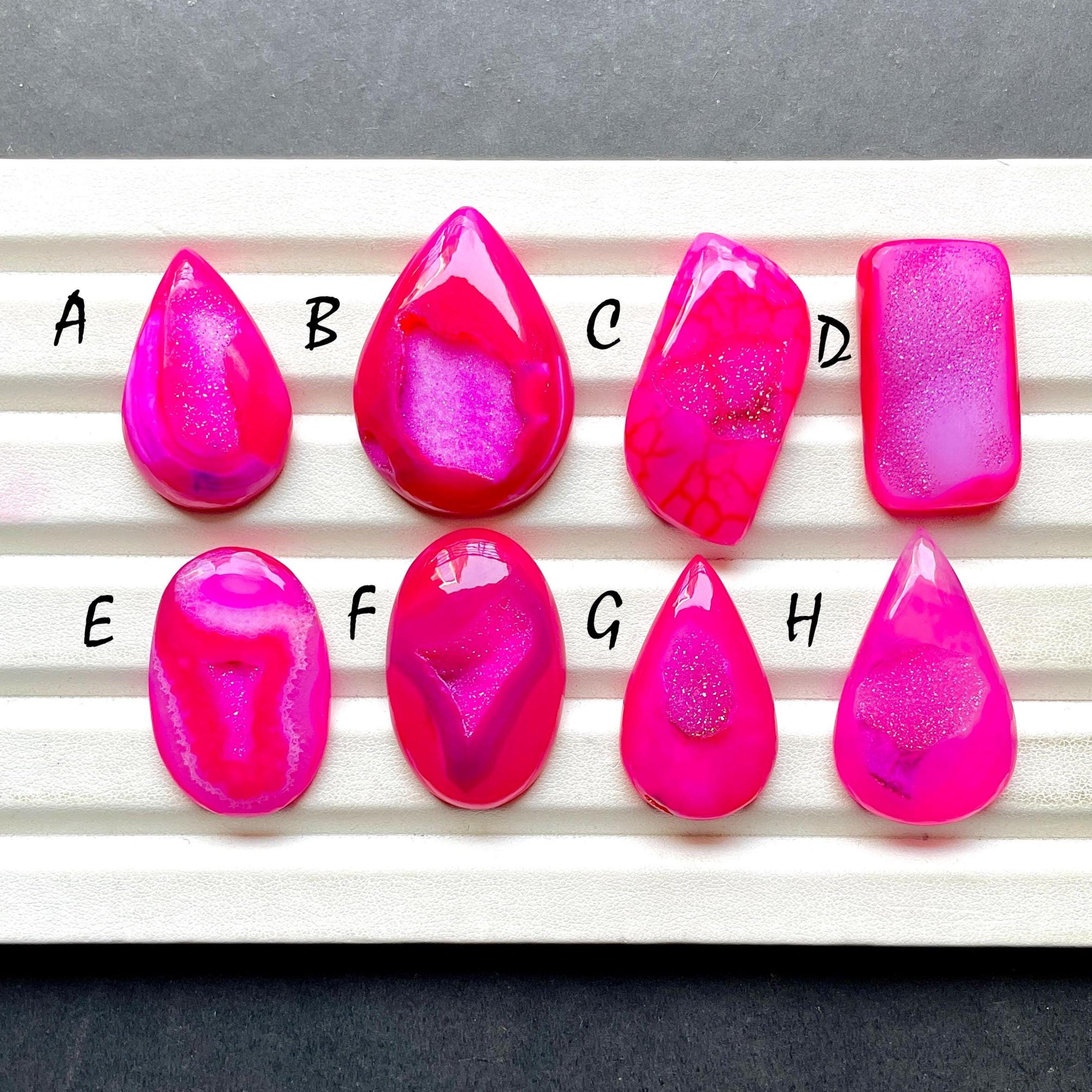 HOT Pink Color Window Druzy Agate Cabochon Loose Gemstone For Jewelry Making, AAA+ Hot Pink Window Druzy For Wire Wrap