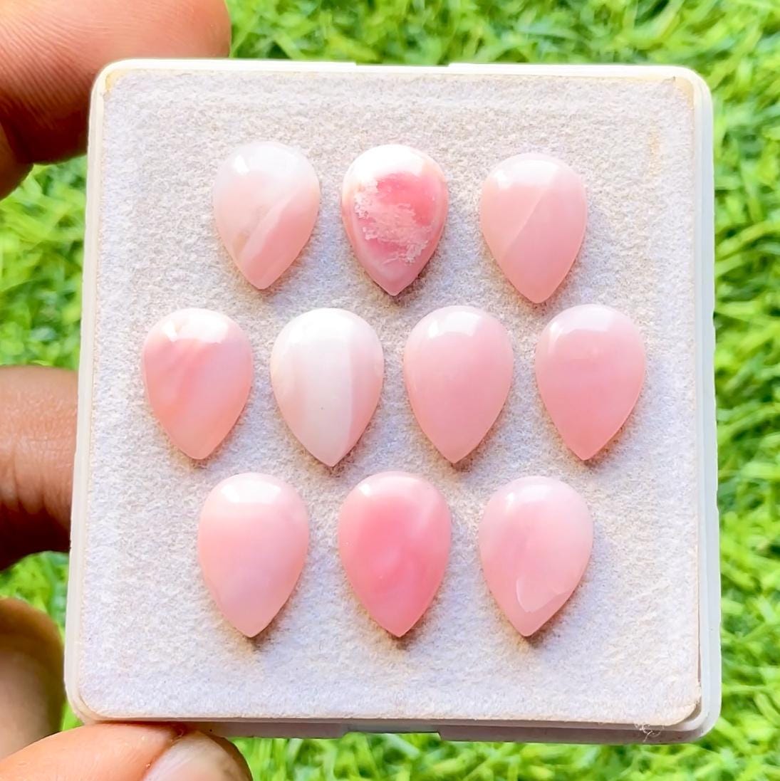 Pink Opal 10x14 MM Pear Shape Calibrated Smooth Cabochon With Flat Back Gemstone 10 Pieces Lot For Handmade Jewelry, AAA+ Pink Opal Stone