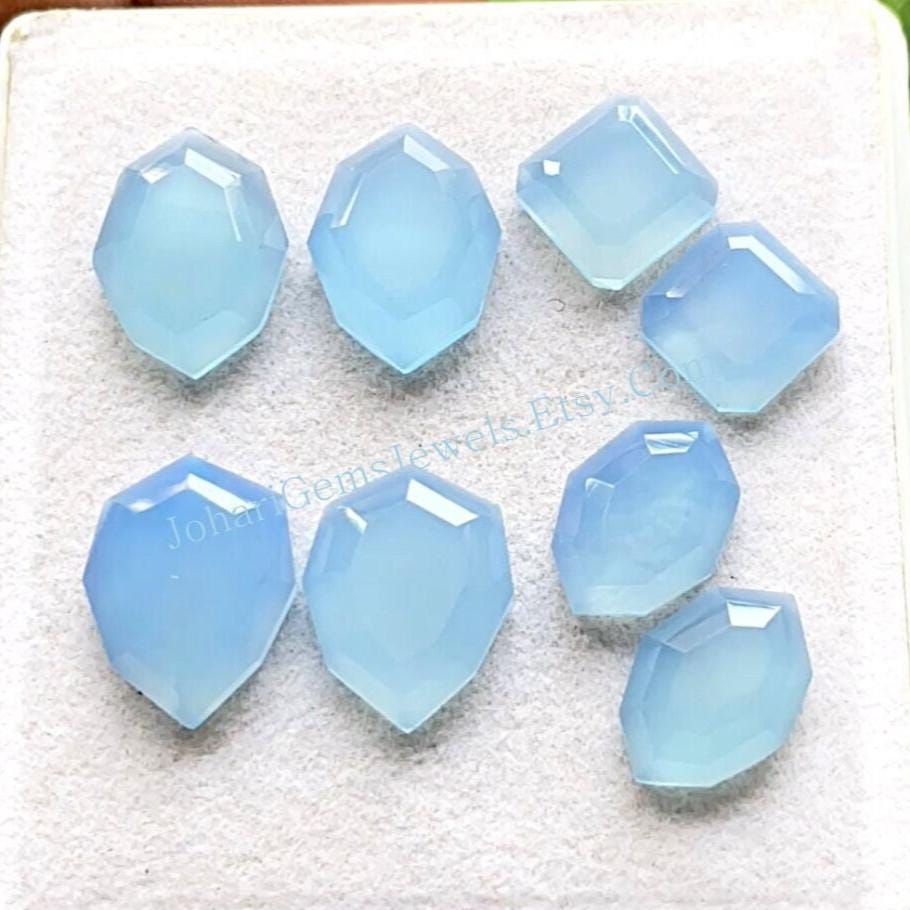 NATURAL Chalcedony Fancy Shape Pair With Flat Back Gemstone 4 Pairs Lot, AAA+ Sky Blue Chalcedony Used For Jewelry Making