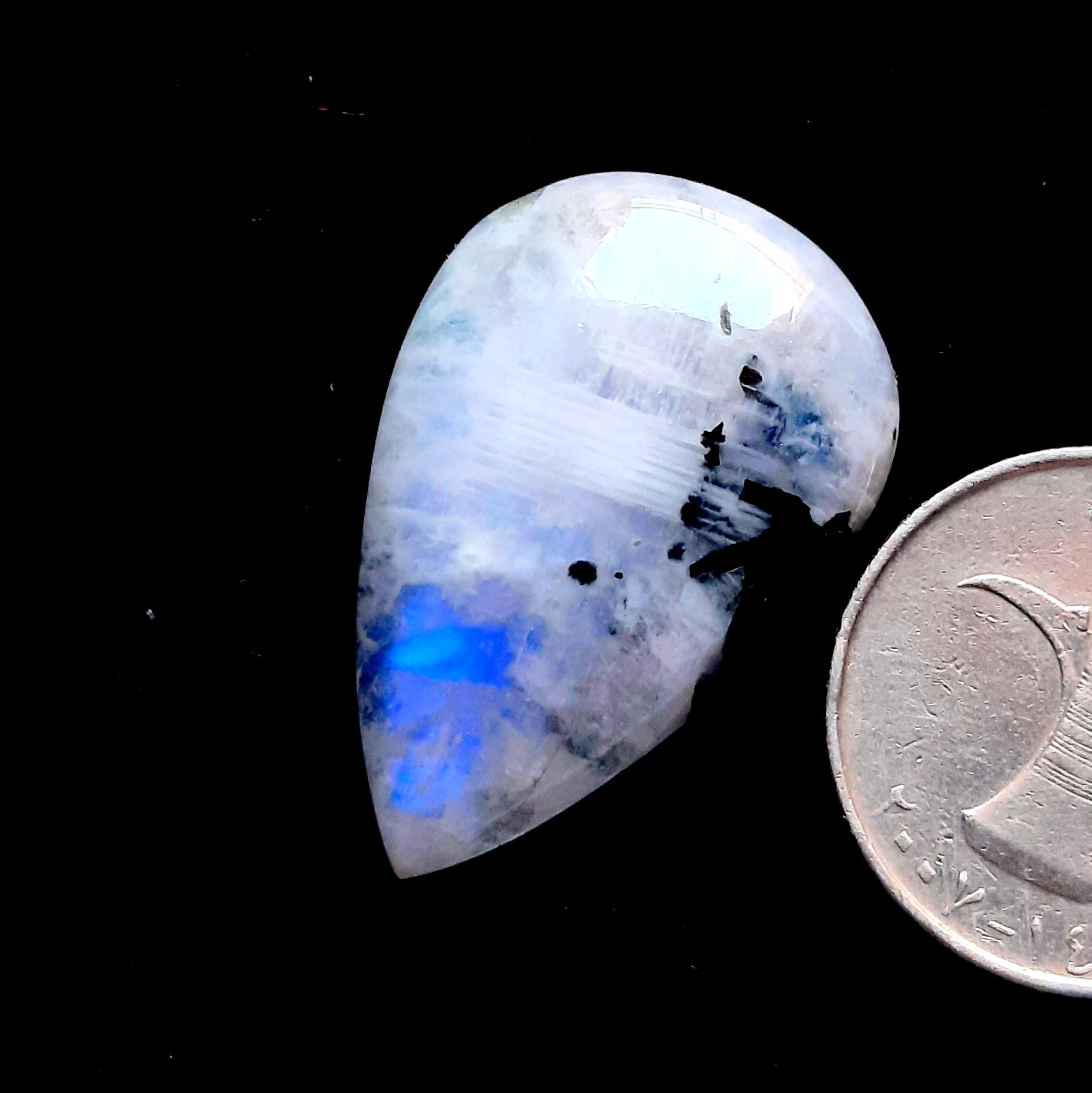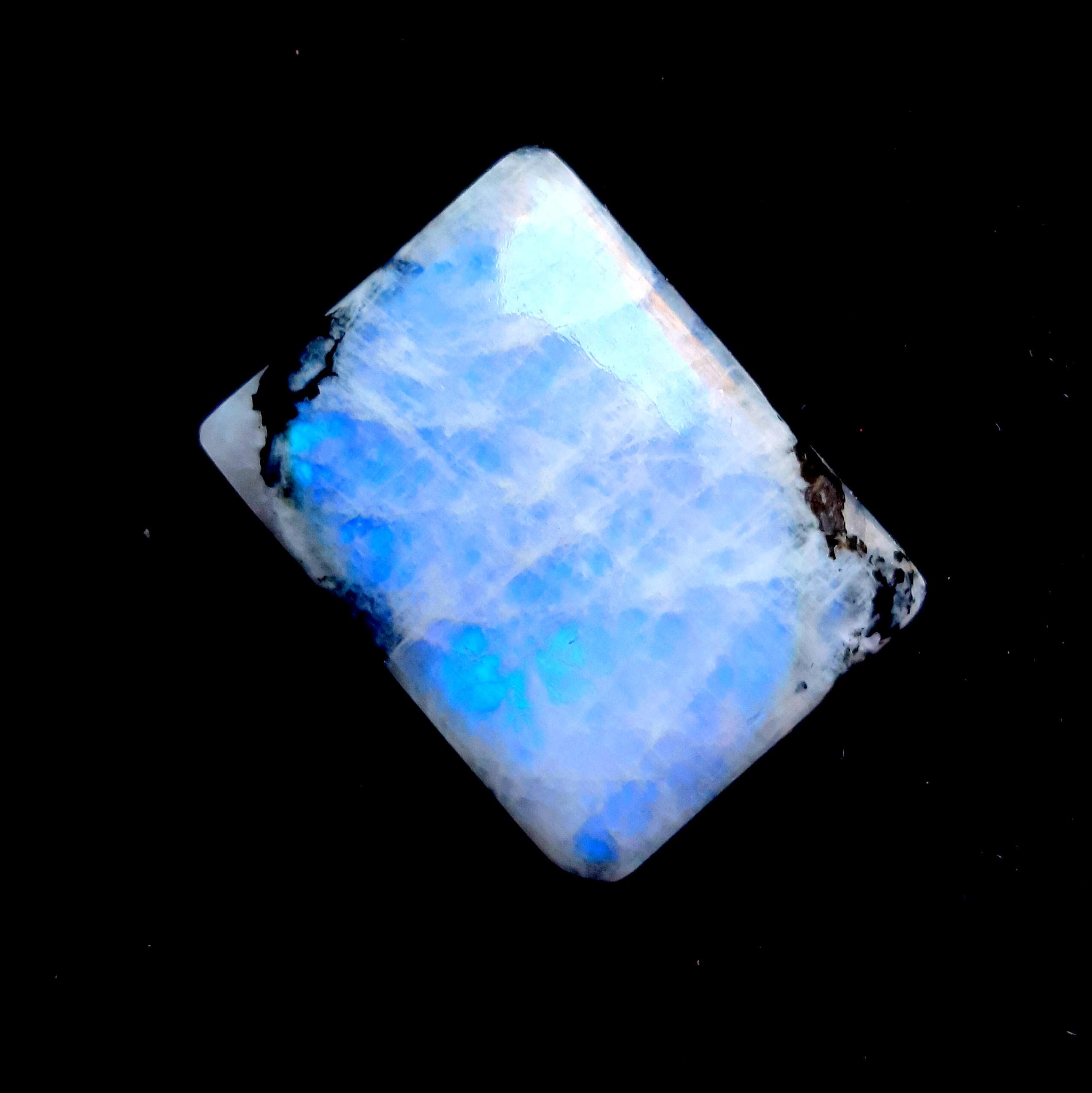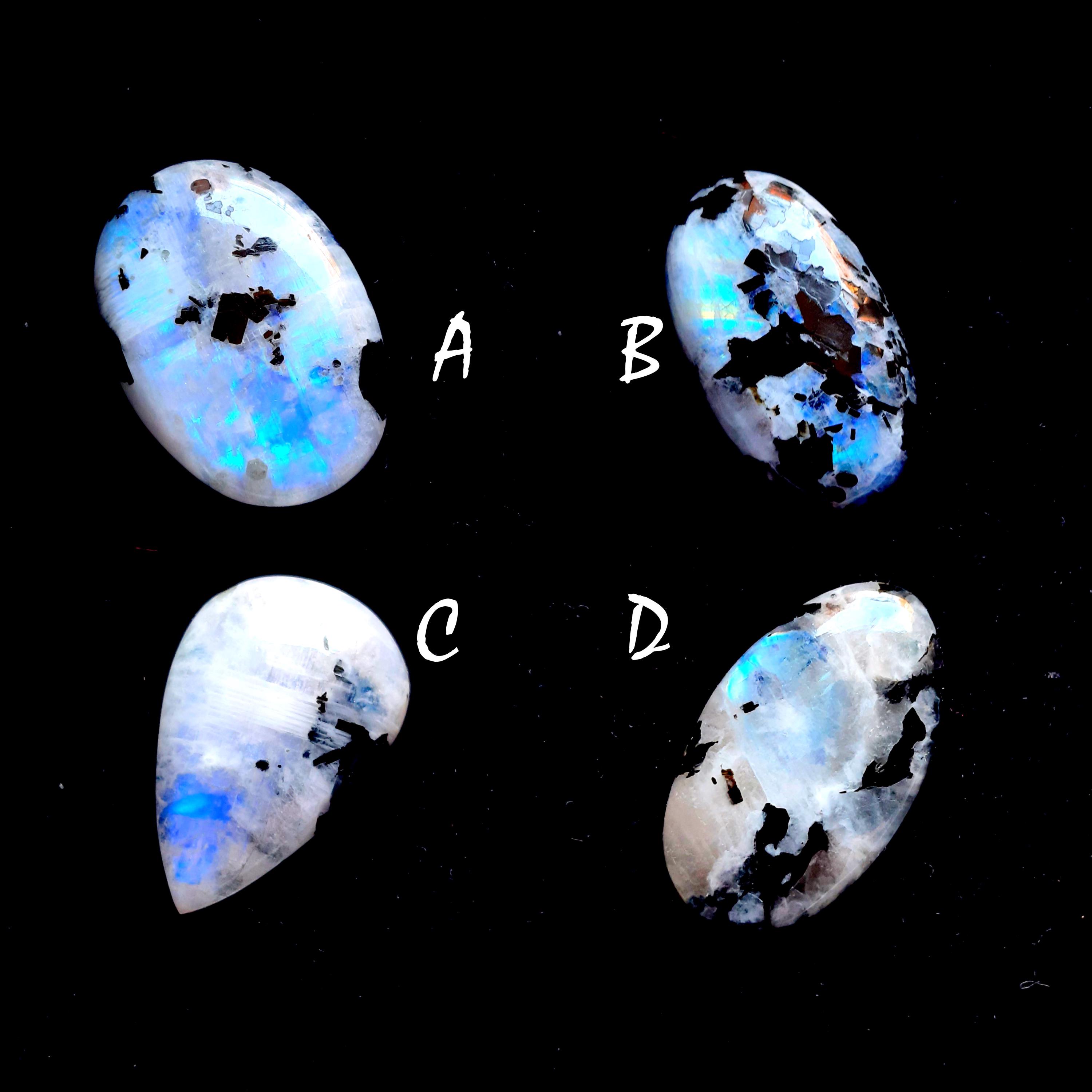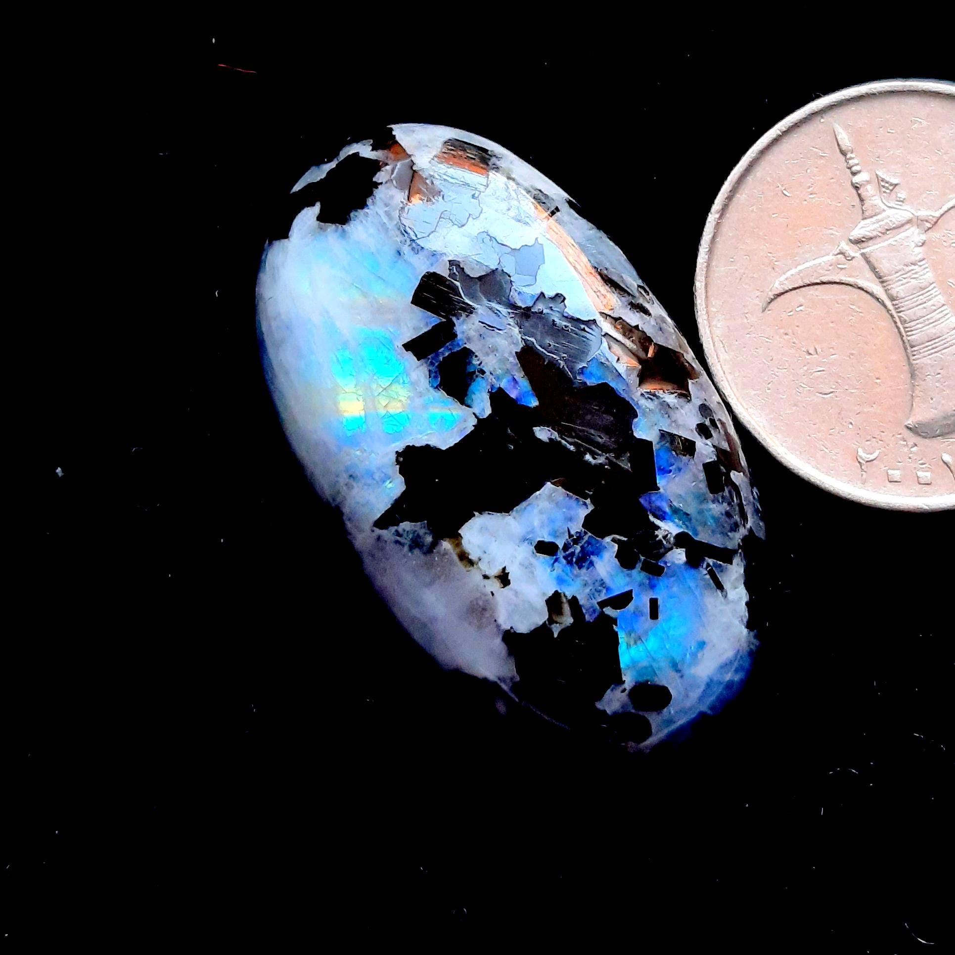 Rainbow Moonstone Cabochon With Black Tourmaline Dot For Jewelry Making, AAA+ Natural Rainbow Moonstone Cabochon For Wire Wrap