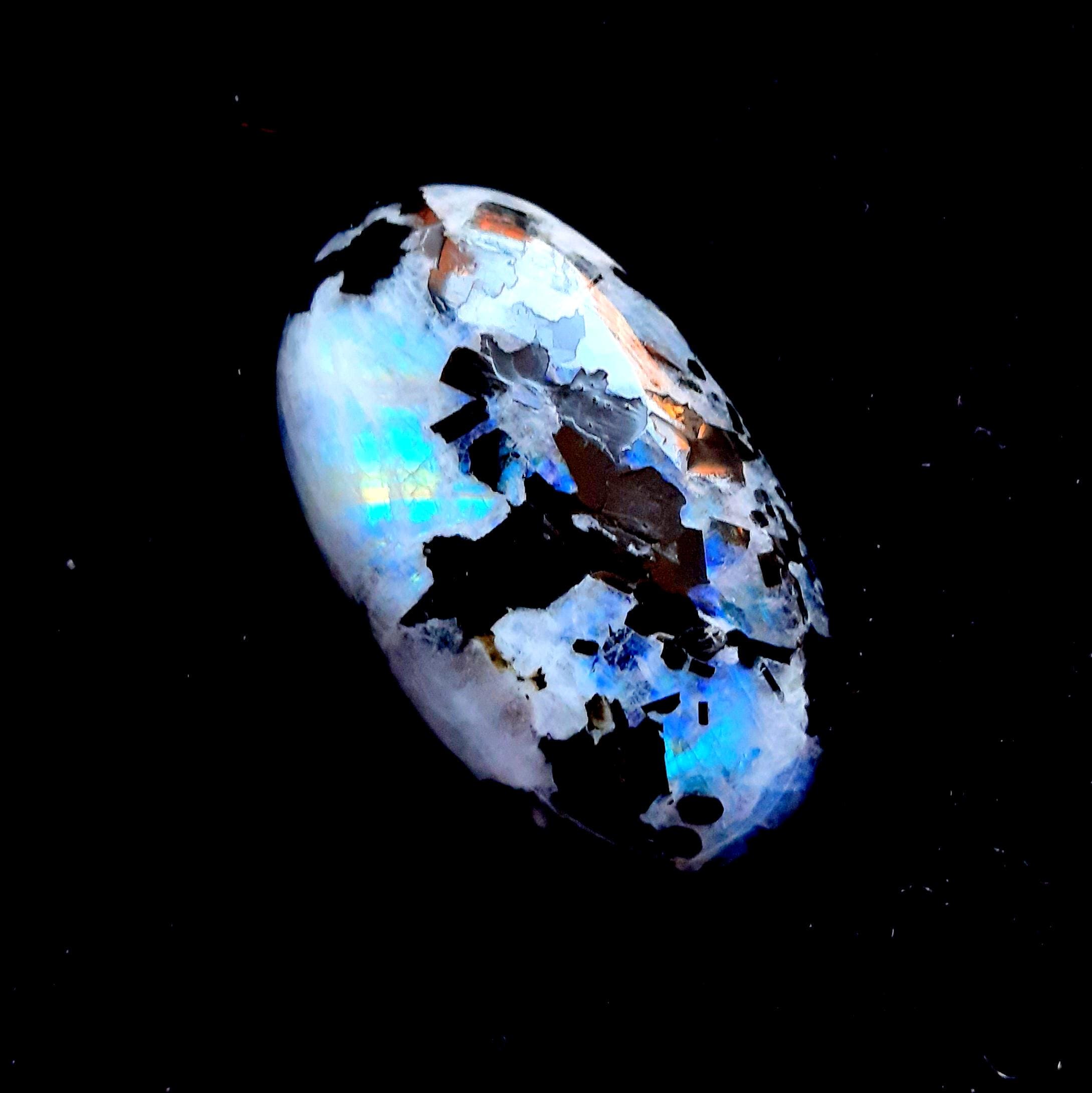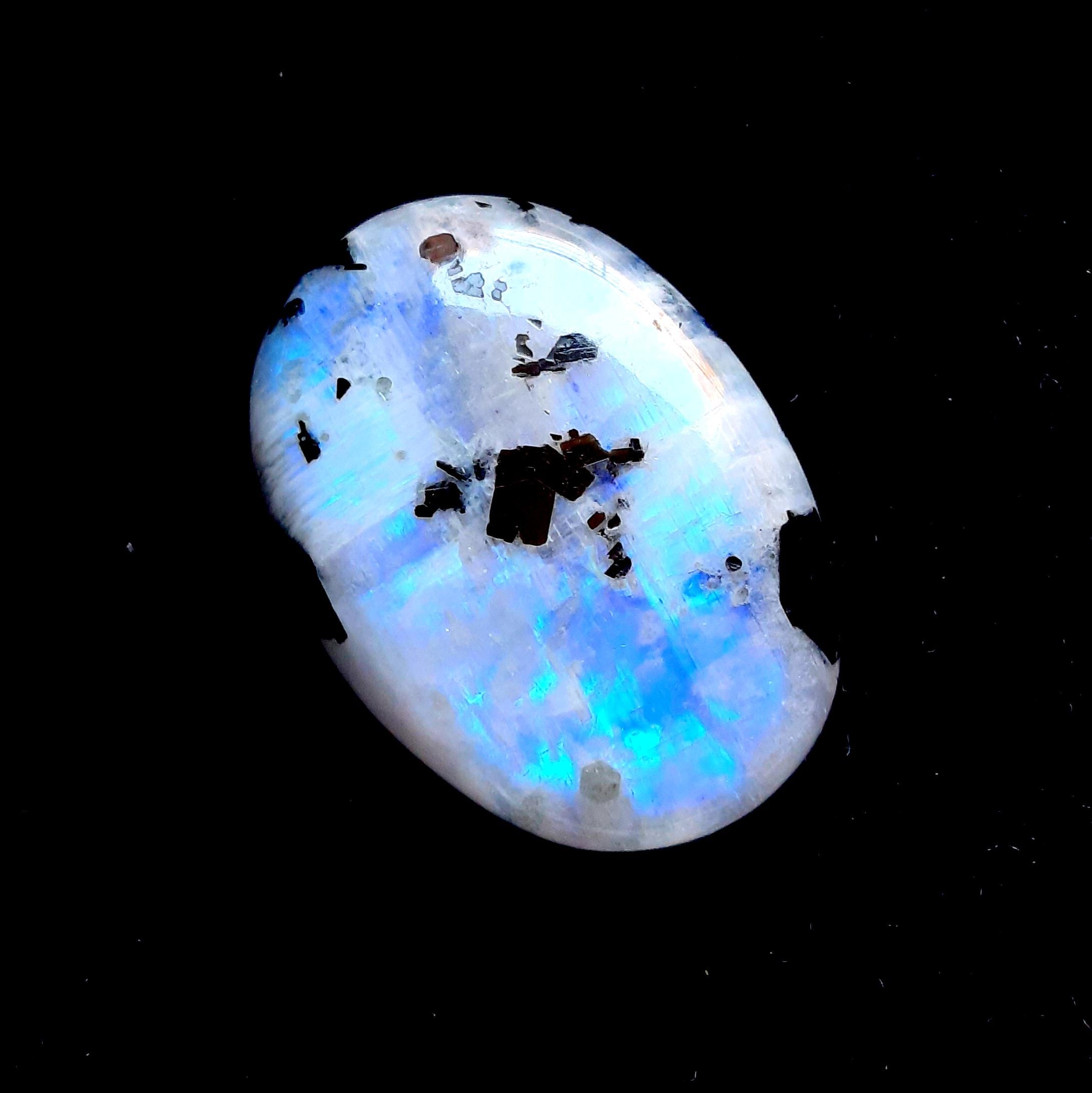 ✪ Gemstone - Natural Rainbow Moonstone With Tourmaline Dot