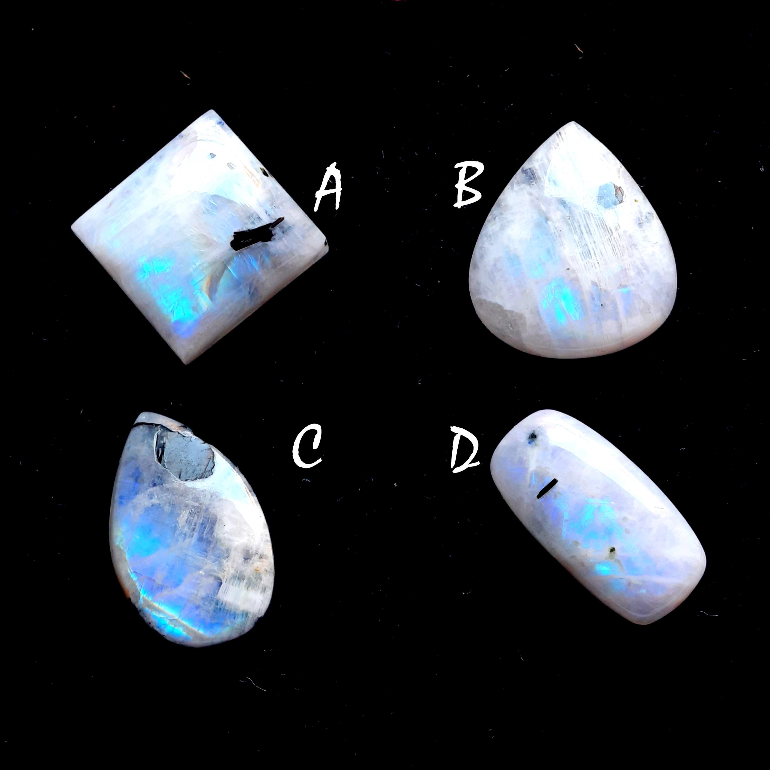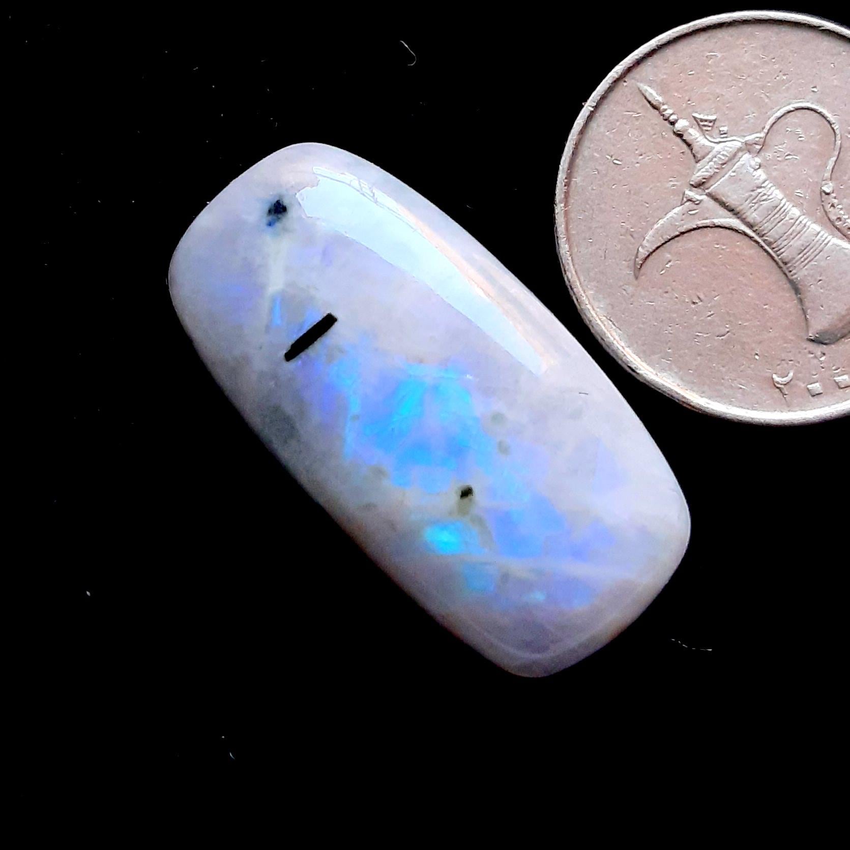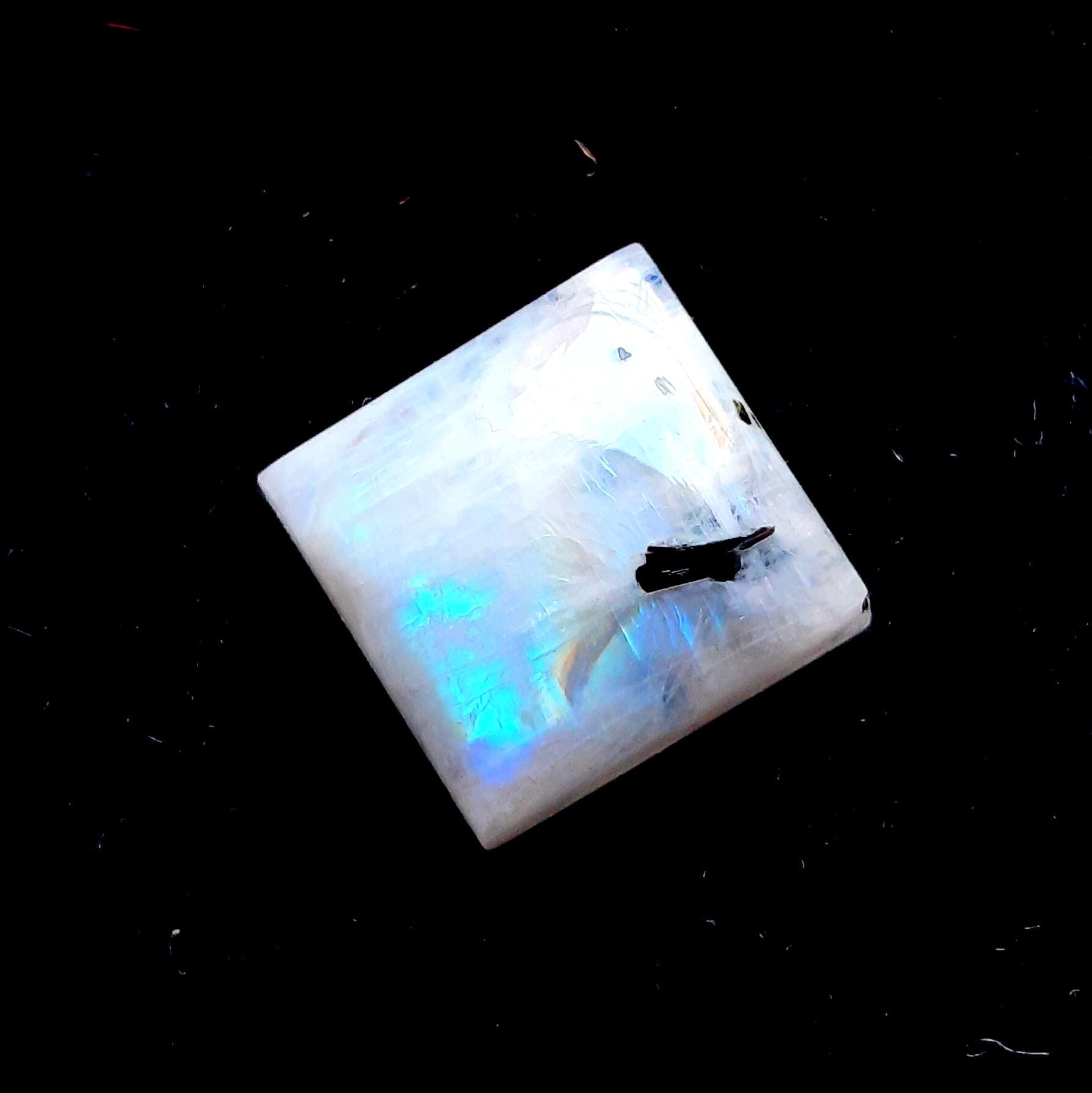 Rainbow Moonstone Cabochon With Black Tourmaline Dot For Jewelry Making, AAA+ Natural Rainbow Moonstone Cabochon For Wire Wrap