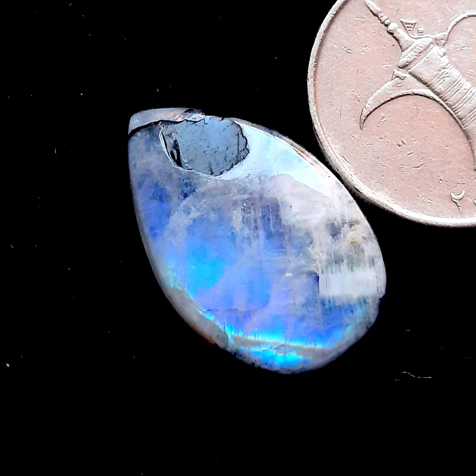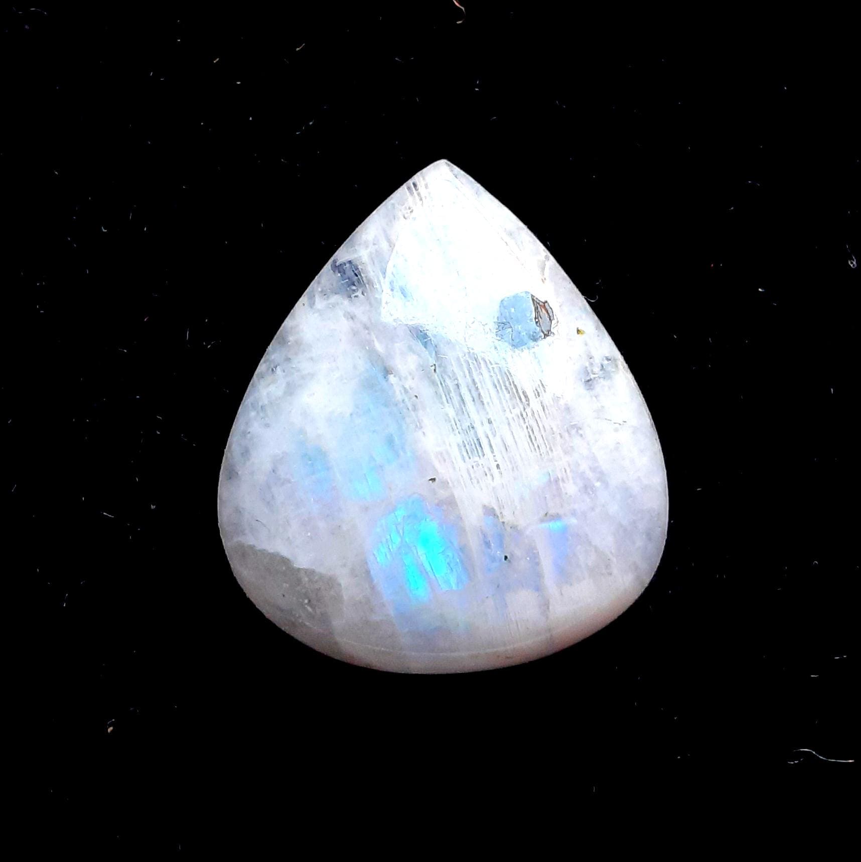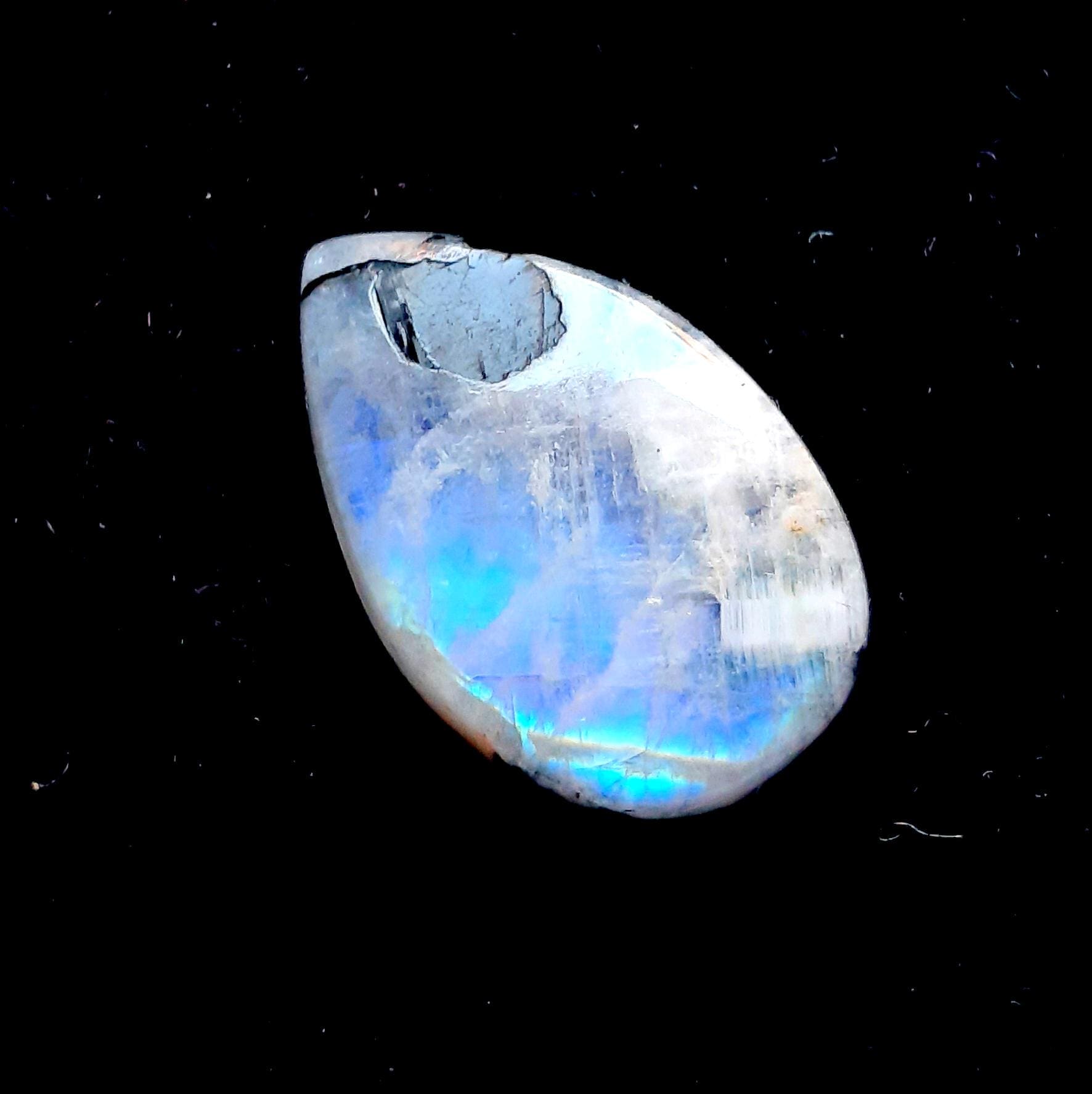 Rainbow Moonstone Cabochon With Black Tourmaline Dot For Jewelry Making, AAA+ Natural Rainbow Moonstone Cabochon For Wire Wrap