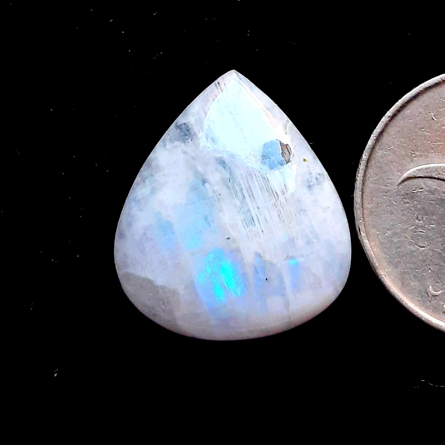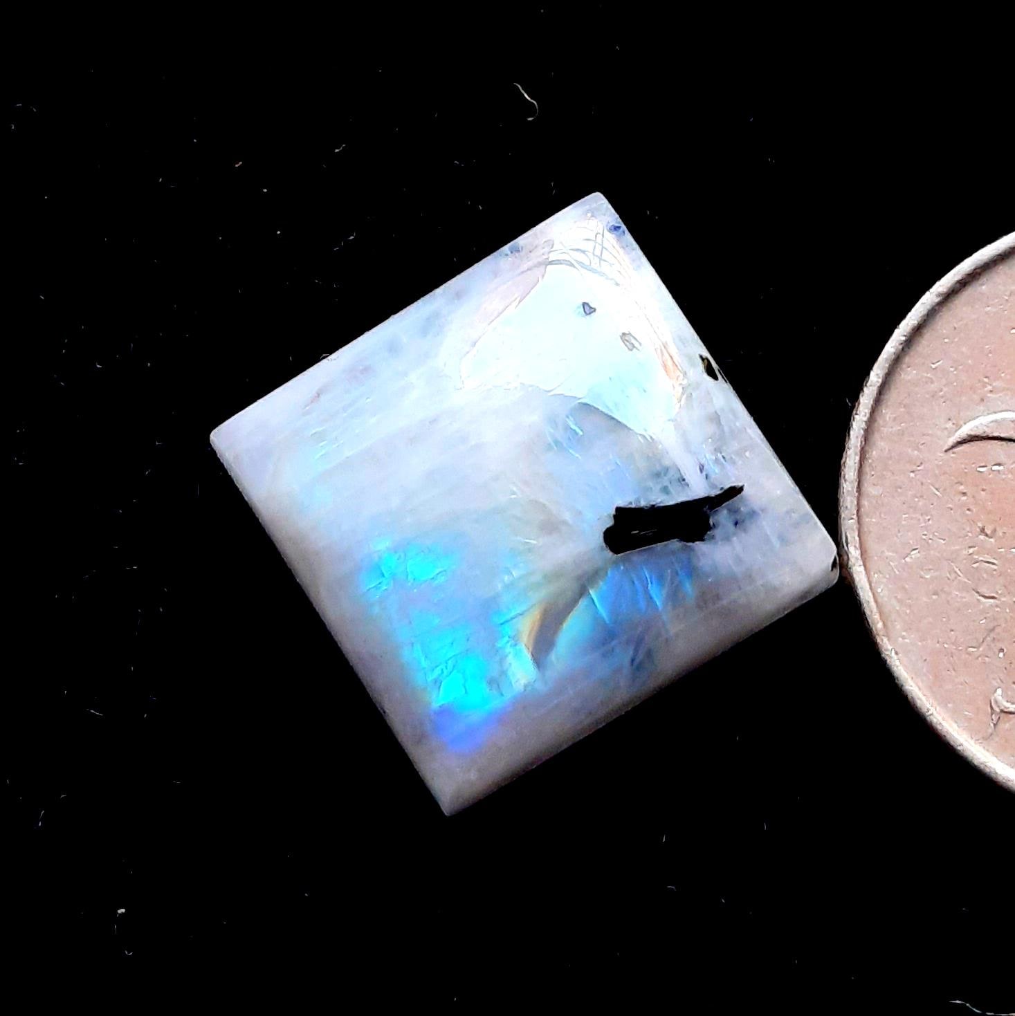 ✪ Gemstone - Natural Rainbow Moonstone With Tourmaline Dot