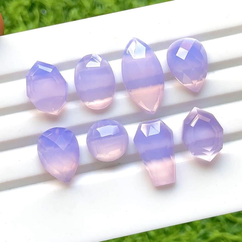 Lavender Quartz Fancy Cut Mix Shape With Flat Back Gemstone 8 Pieces Lot For Jewelry Making, AAA+ Lavender Quartz Used For Jewelry Making