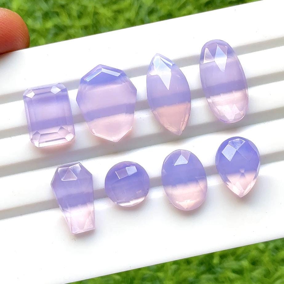 Lavender Quartz Fancy Cut Mix Shape With Flat Back Gemstone 8 Pieces Lot For Jewelry Making, AAA+ Lavender Quartz Used For Jewelry Making