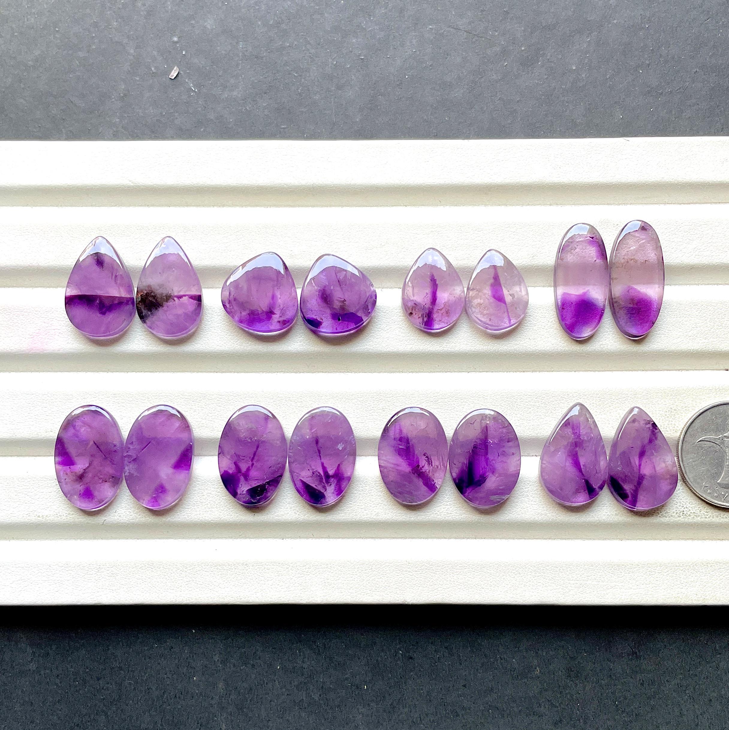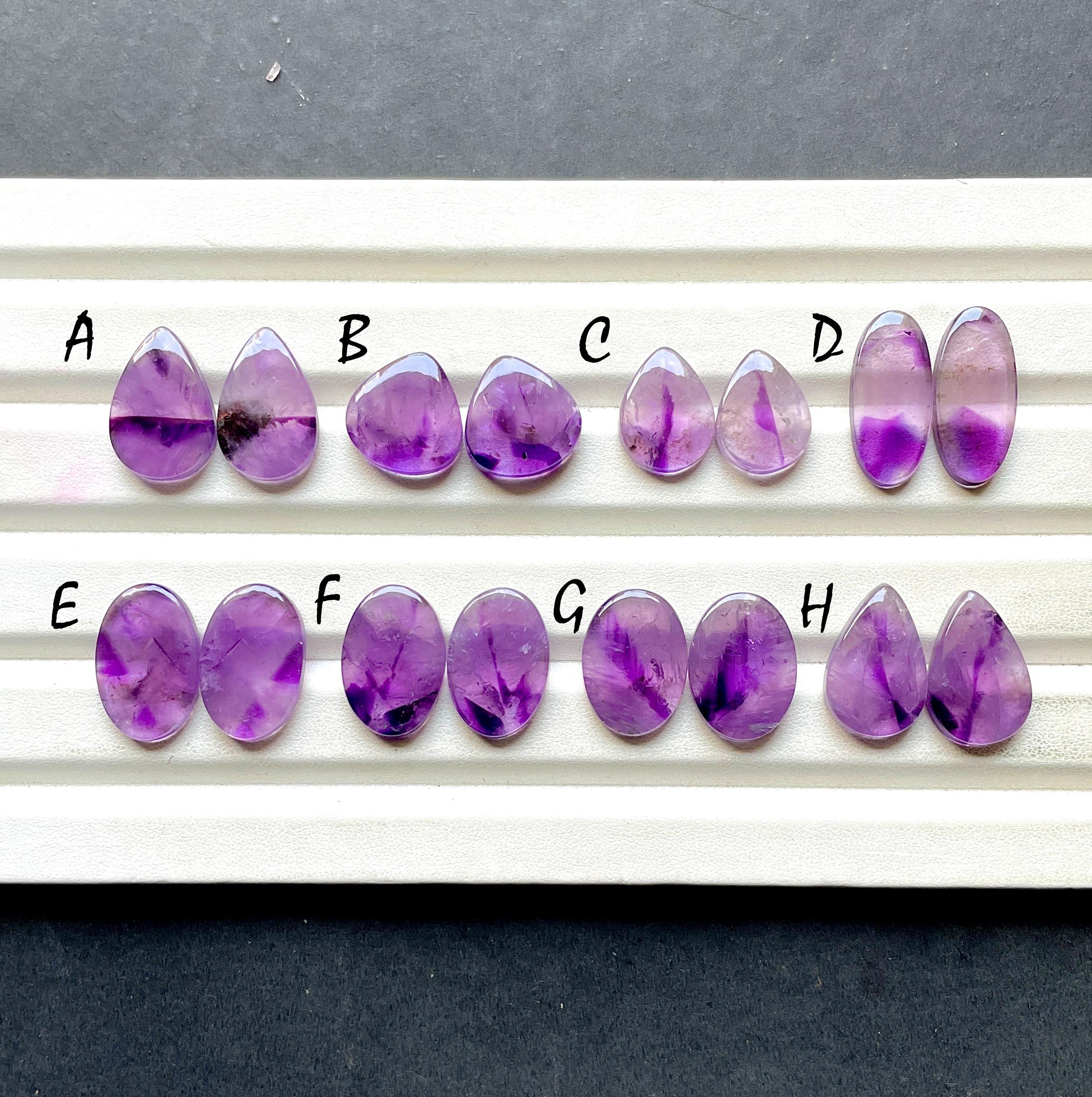 Trapiche Amethyst Matching Pairs Cabochon Loose Gemstone For Jewelry Making, AAA+ Natural Trapiche Amethyst Pair For Earrings