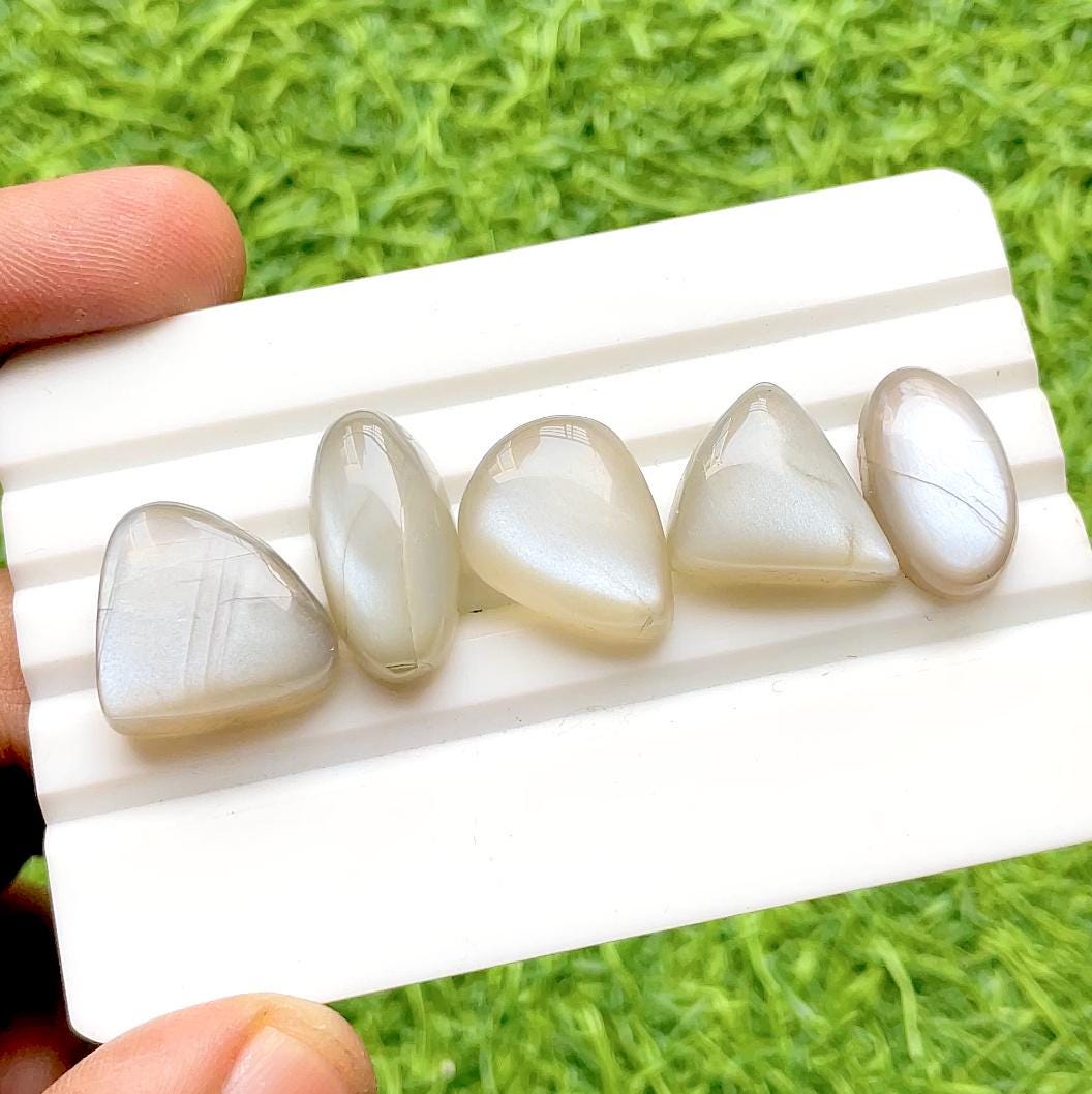 Natural Grey Moonstone Cabochon Loose Gemstone 5 Pieces Lot For Jewelry Making, AAA+ Natural Grey Moonstone With Flat Back For Handmade Jewelry