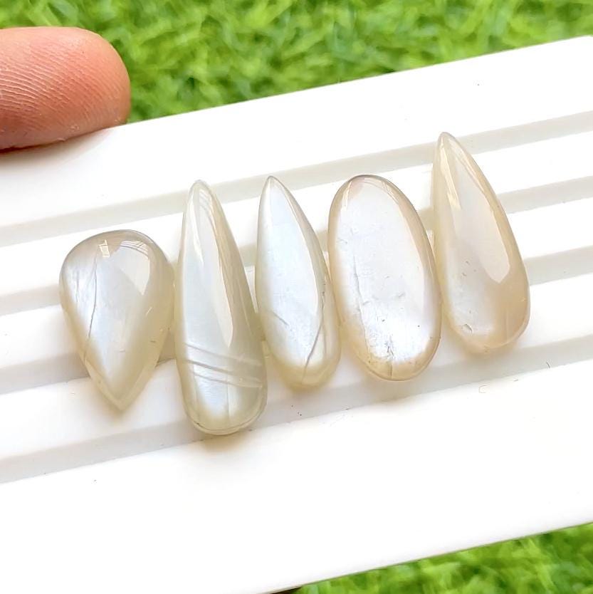 Natural Grey Moonstone Cabochon Loose Gemstone 5 Pieces Lot For Jewelry Making, AAA+ Natural Grey Moonstone With Flat Back For Handmade Jewelry