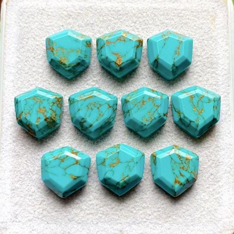 Copper Turquoise 12 MM Trillion Shape Fancy Cut Gemstone 10 Pieces Lot, AAA+ Copper Turquoise With Flat Back For Jewelry Making