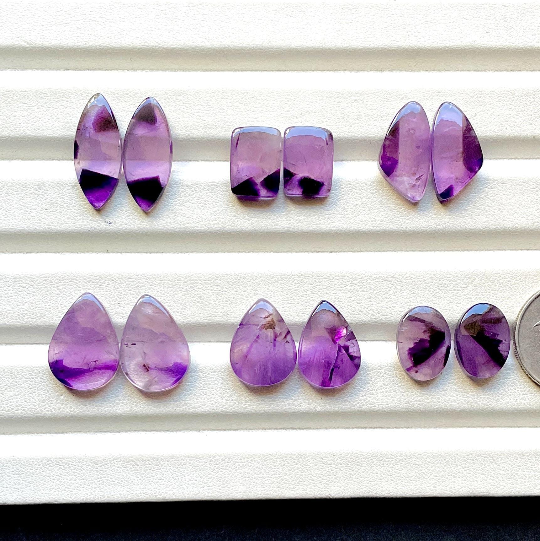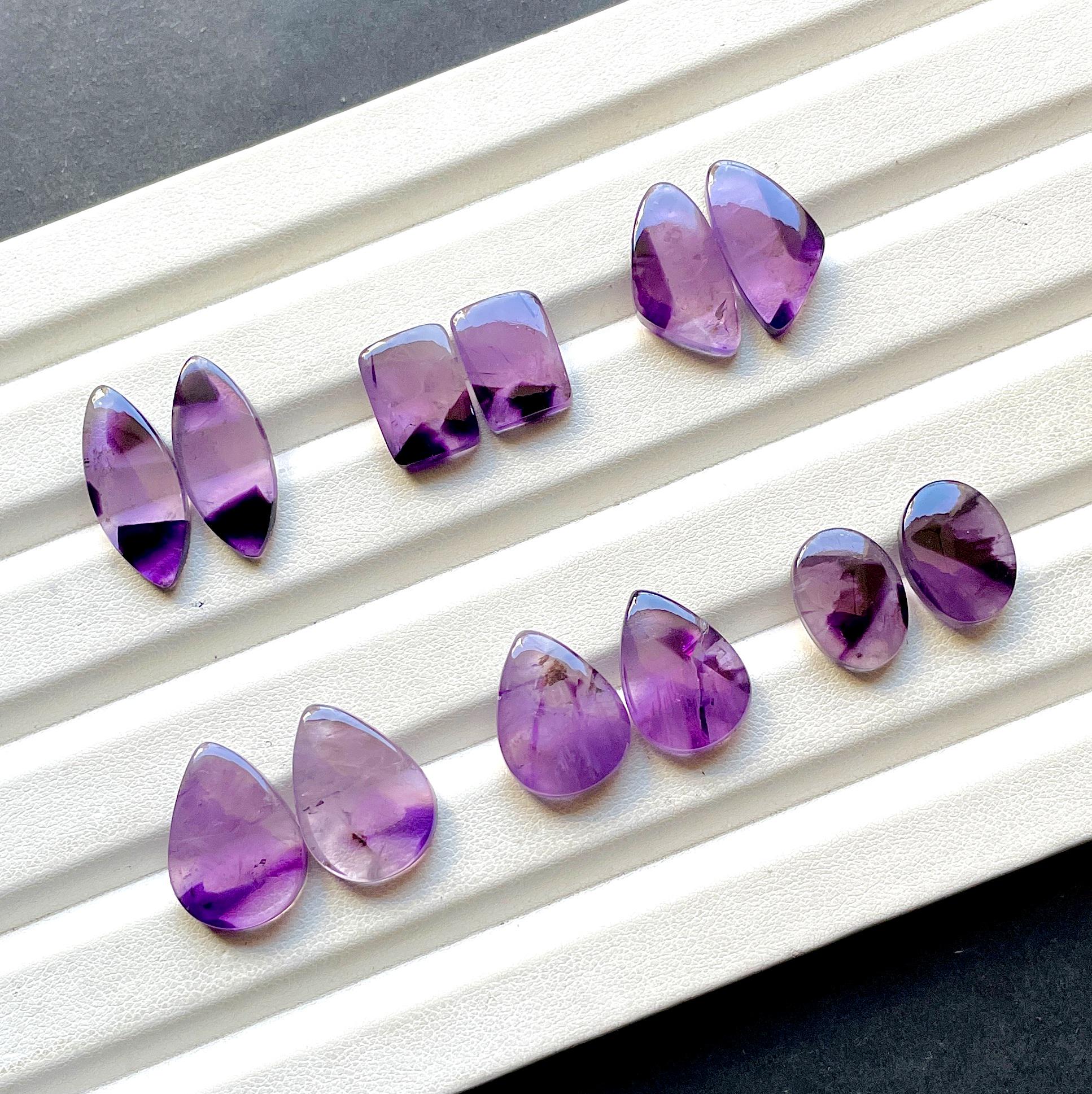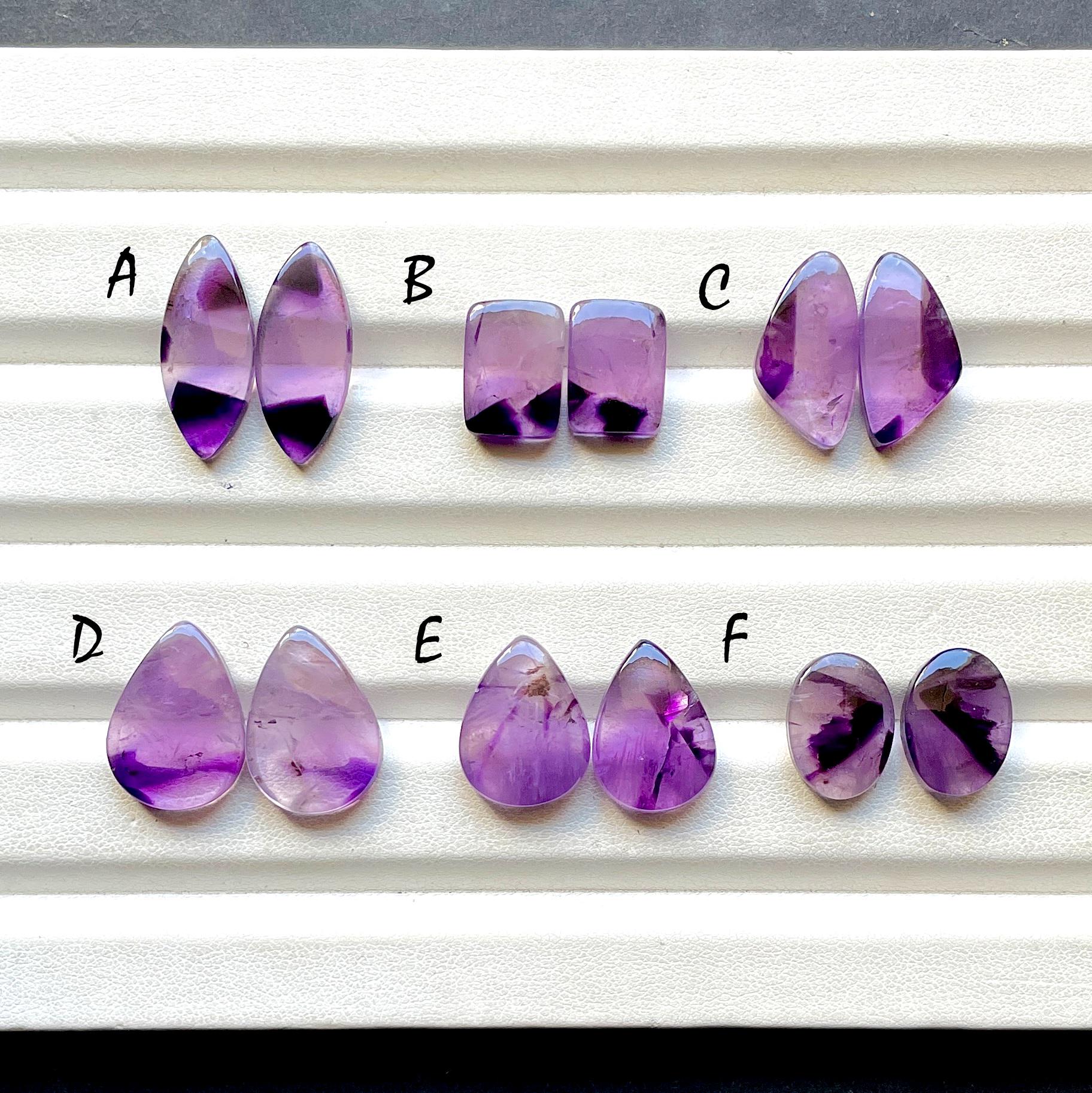 Trapiche Amethyst Matching Pairs Cabochon Loose Gemstone For Jewelry Making, AAA+ Natural Trapiche Amethyst Pair For Earrings