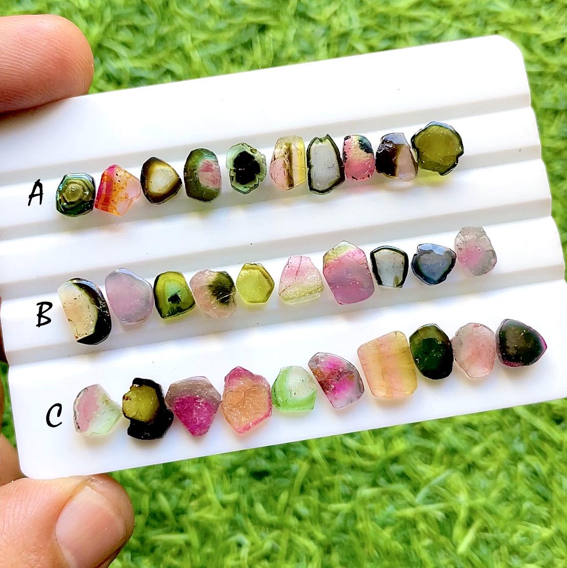 Multi Tourmaline Watermelon Gemstones Slice 10 Pieces Lot For Jewelry Making, AAA+ Natural Multi Tourmaline Watermelon For Handmade Jewelry