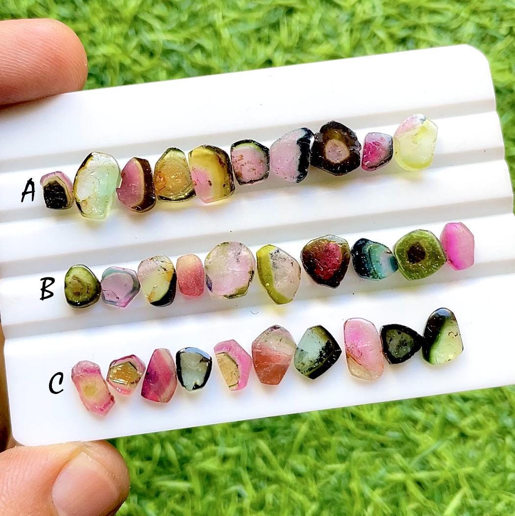 Multi Tourmaline Watermelon Gemstones Slice 10 Pieces Lot For Jewelry Making, AAA+ Natural Multi Tourmaline Watermelon For Handmade Jewelry