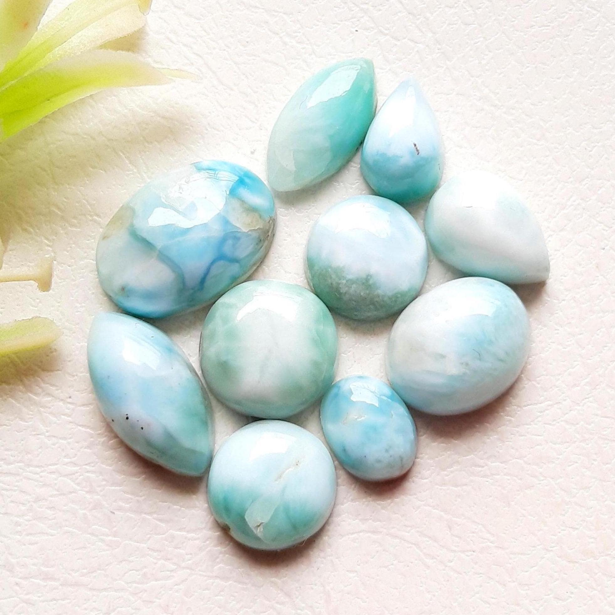 LARIMAR Cabochon Loose Gemstone 10 Pieces Lot For Jewelry Making, Natural AAA+ Larimar Cabochon For Handmade Jewelry