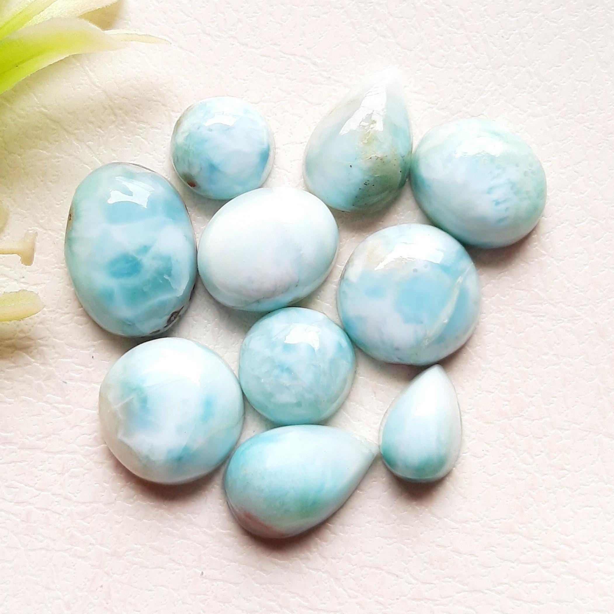 LARIMAR Cabochon Loose Gemstone 10 Pieces Lot For Jewelry Making, Natural AAA+ Larimar Cabochon For Handmade Jewelry