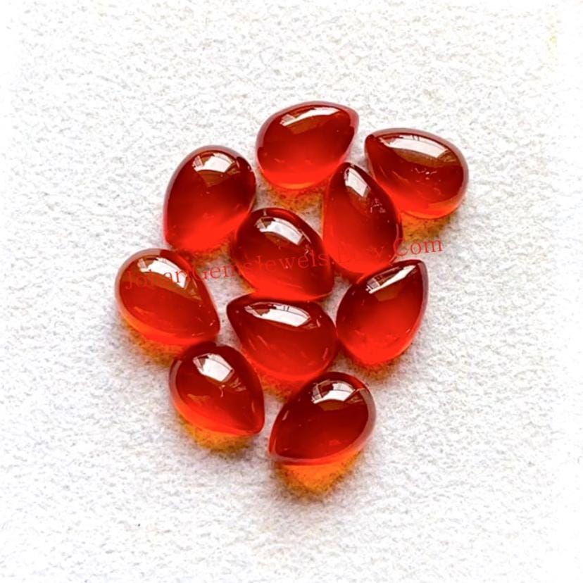 NATURAL Carnelian 7X10 MM Pear Shape Cabochon With Flat Back Gemstone 10 Pieces Lot, AAA+ Natural Carnelian Gemstone Used For Jewelry Making
