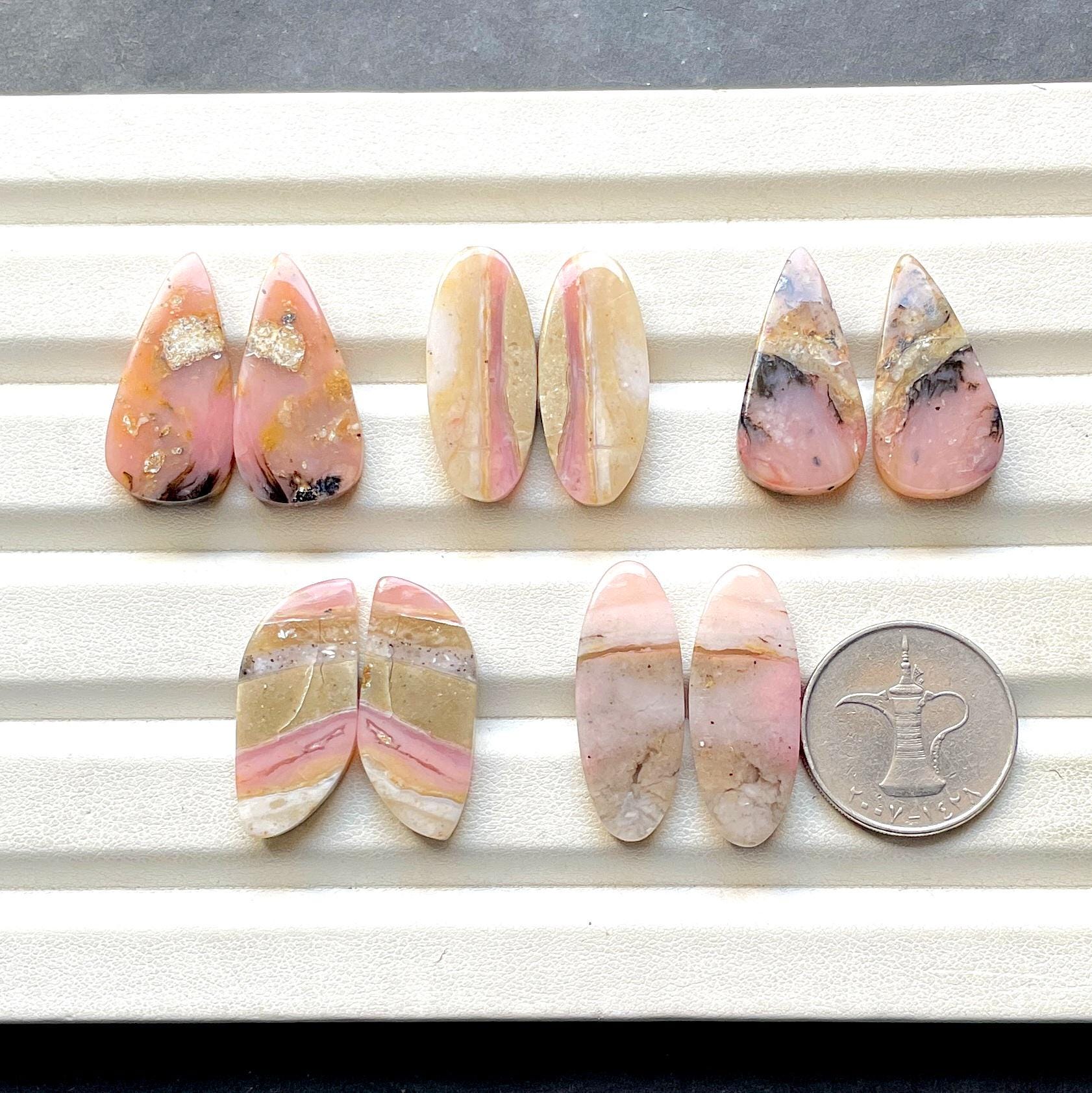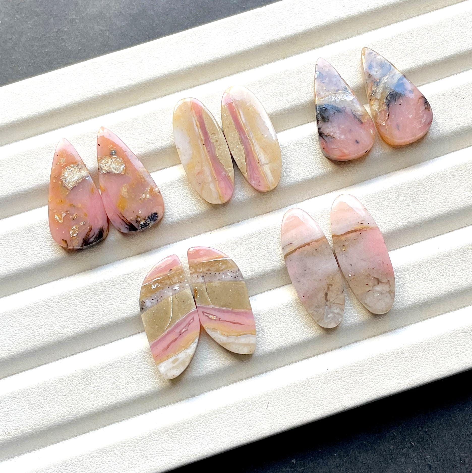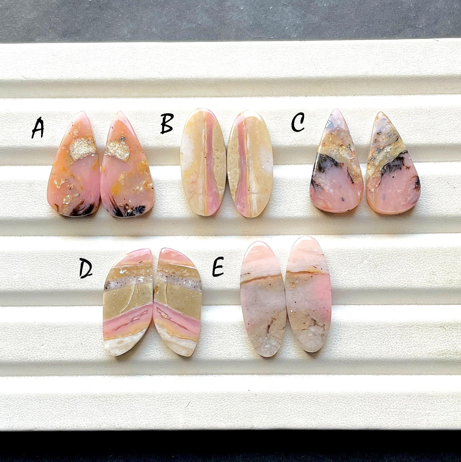 Strawberry Pink Opal Pair Cabochon Loose Gemstone For Handmade Jewelry, AAA+ Natural Pink Opal Matching Pairs For Earrings