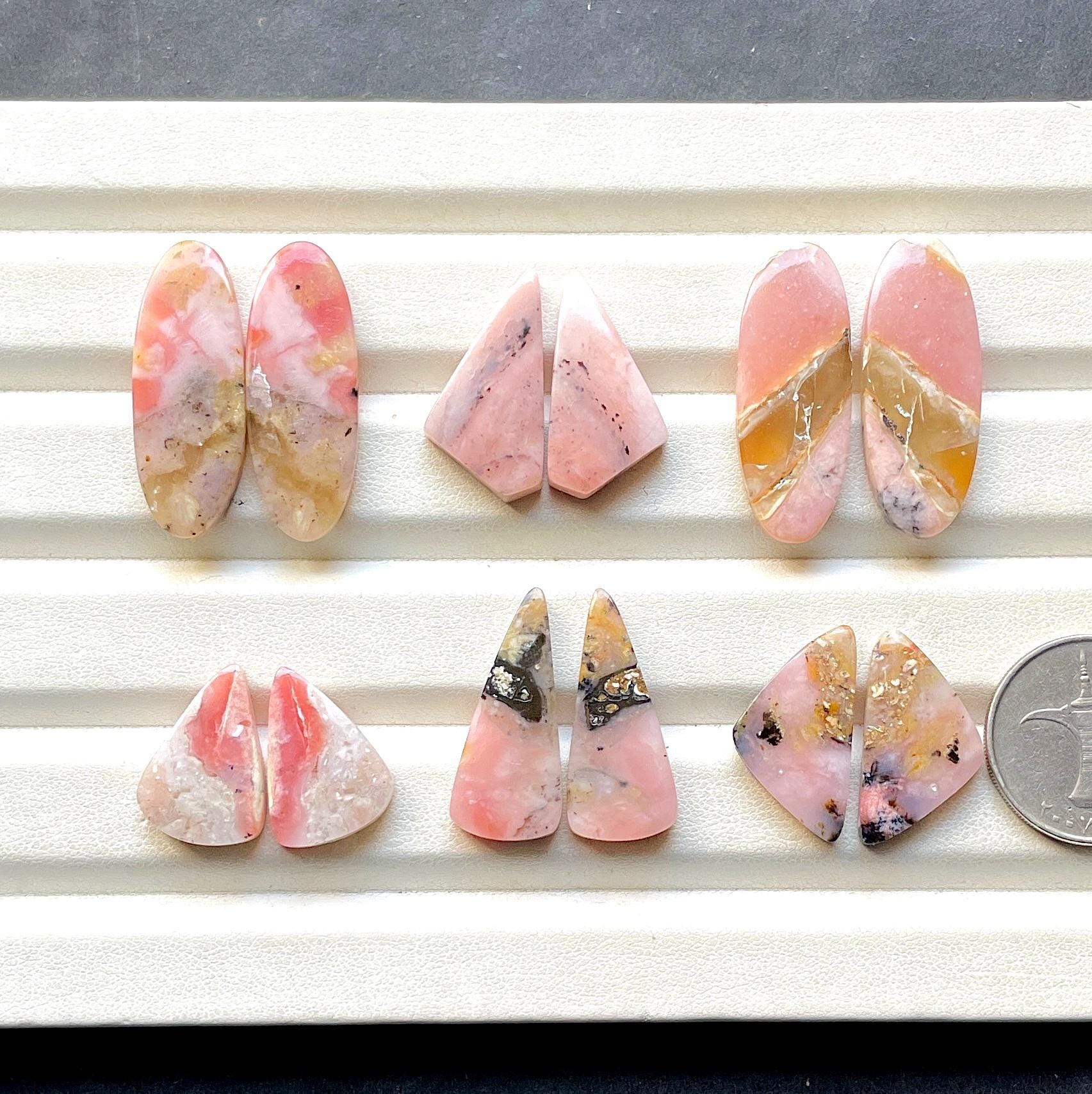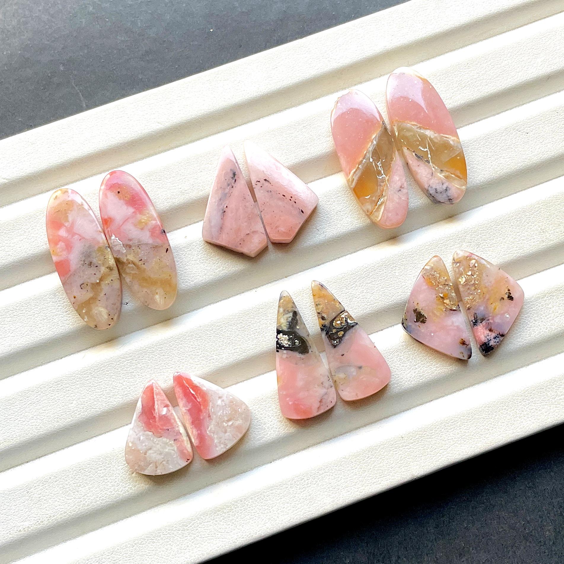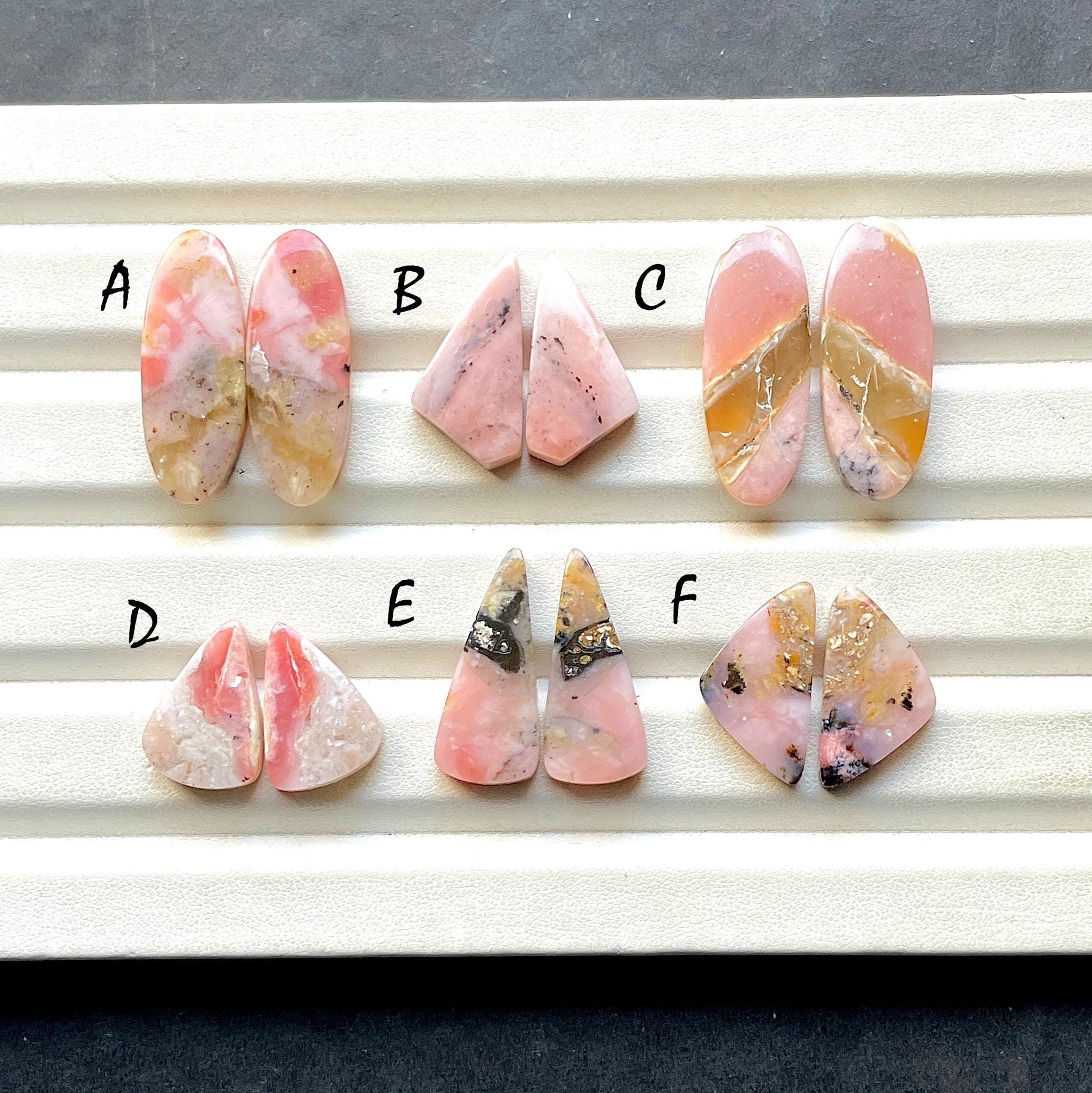 Strawberry Pink Opal Pair Cabochon Loose Gemstone For Handmade Jewelry, AAA+ Natural Pink Opal Matching Pairs For Earrings