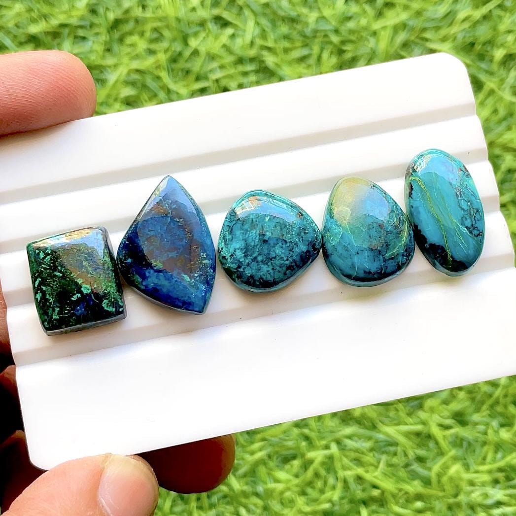 5 Pieces AAA+ Natural Azurite Cabochon Lot For Jewelry Making, AAA+ Natural Azurite Cabochon Lot For Handmade Jewelry & Wire Wrap