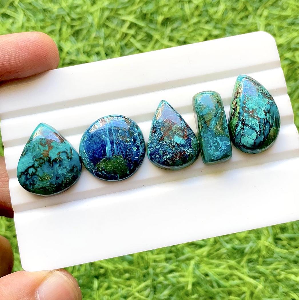5 Pieces AAA+ Natural Azurite Cabochon Lot For Jewelry Making, AAA+ Natural Azurite Cabochon Lot For Handmade Jewelry & Wire Wrap