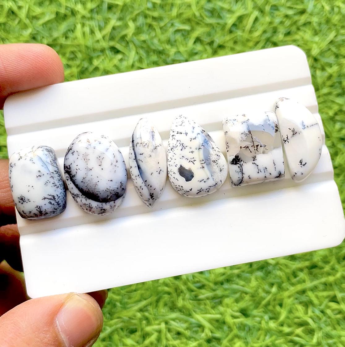 Dendritic Opal Cabochon Loose Gemstone 6 Pieces Lot, AAA+ Natural Dendritic Opal For Handmade Jewelry