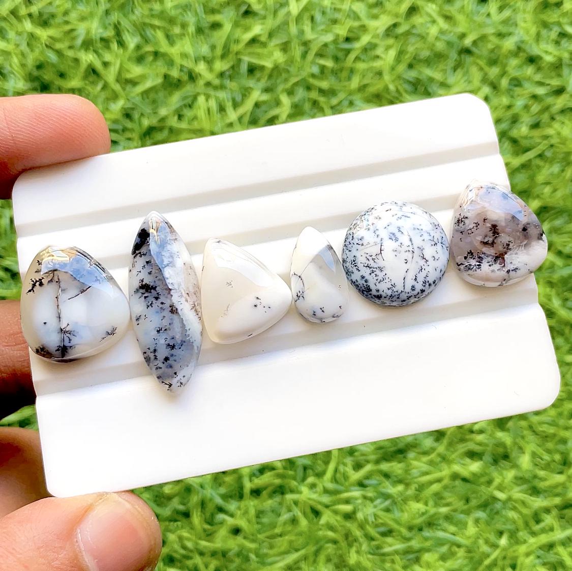 Dendritic Opal Cabochon Loose Gemstone 6 Pieces Lot, AAA+ Natural Dendritic Opal For Handmade Jewelry