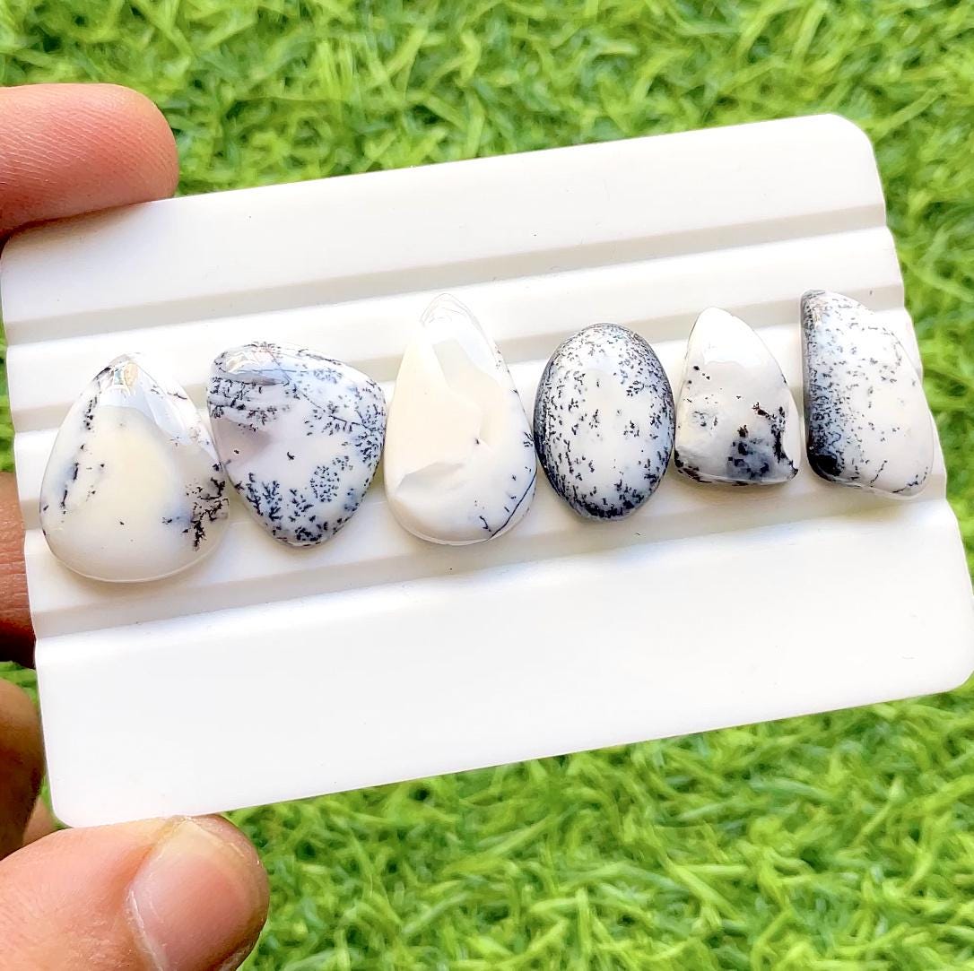 Dendritic Opal Cabochon Loose Gemstone 6 Pieces Lot, AAA+ Natural Dendritic Opal For Handmade Jewelry