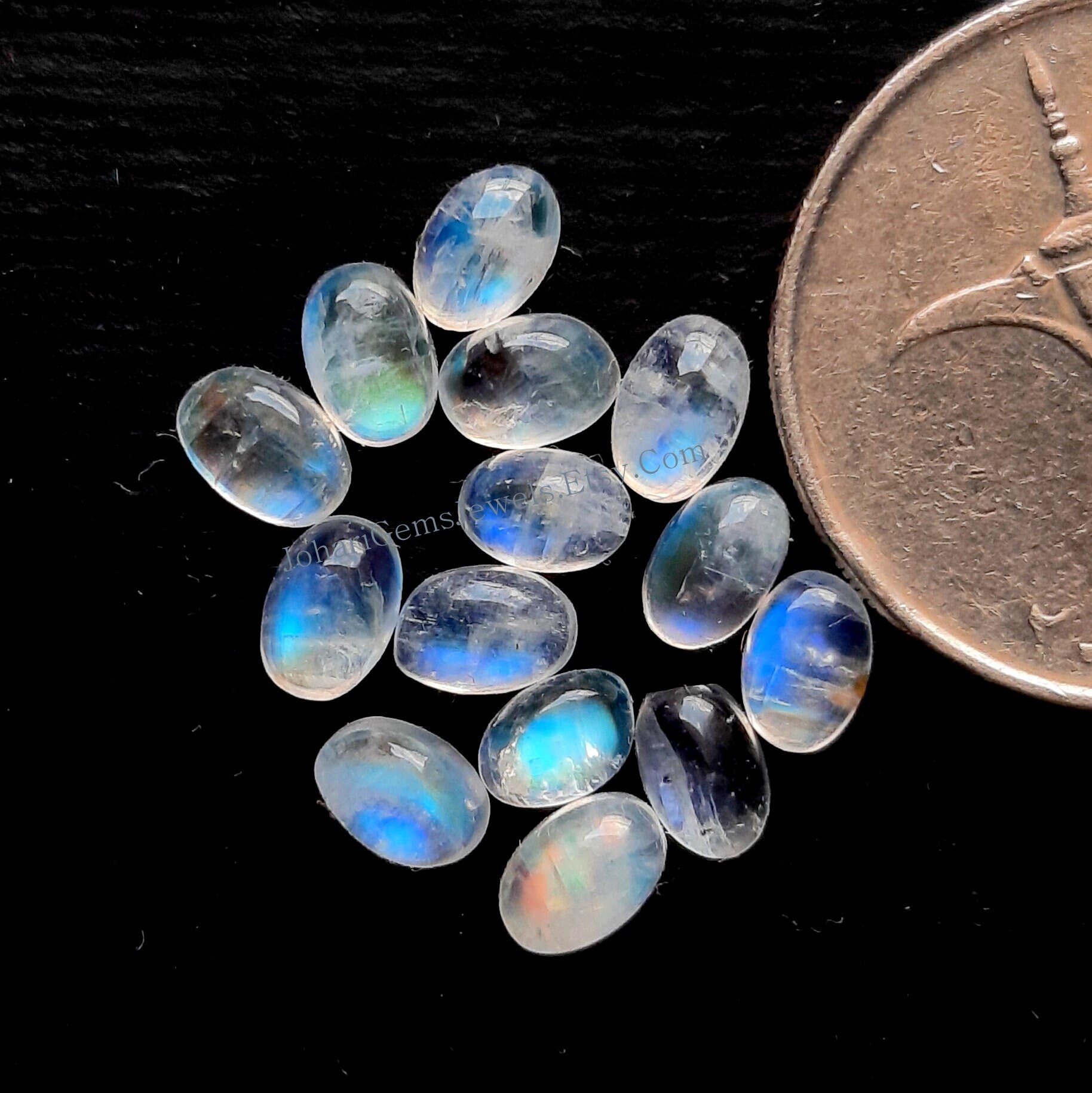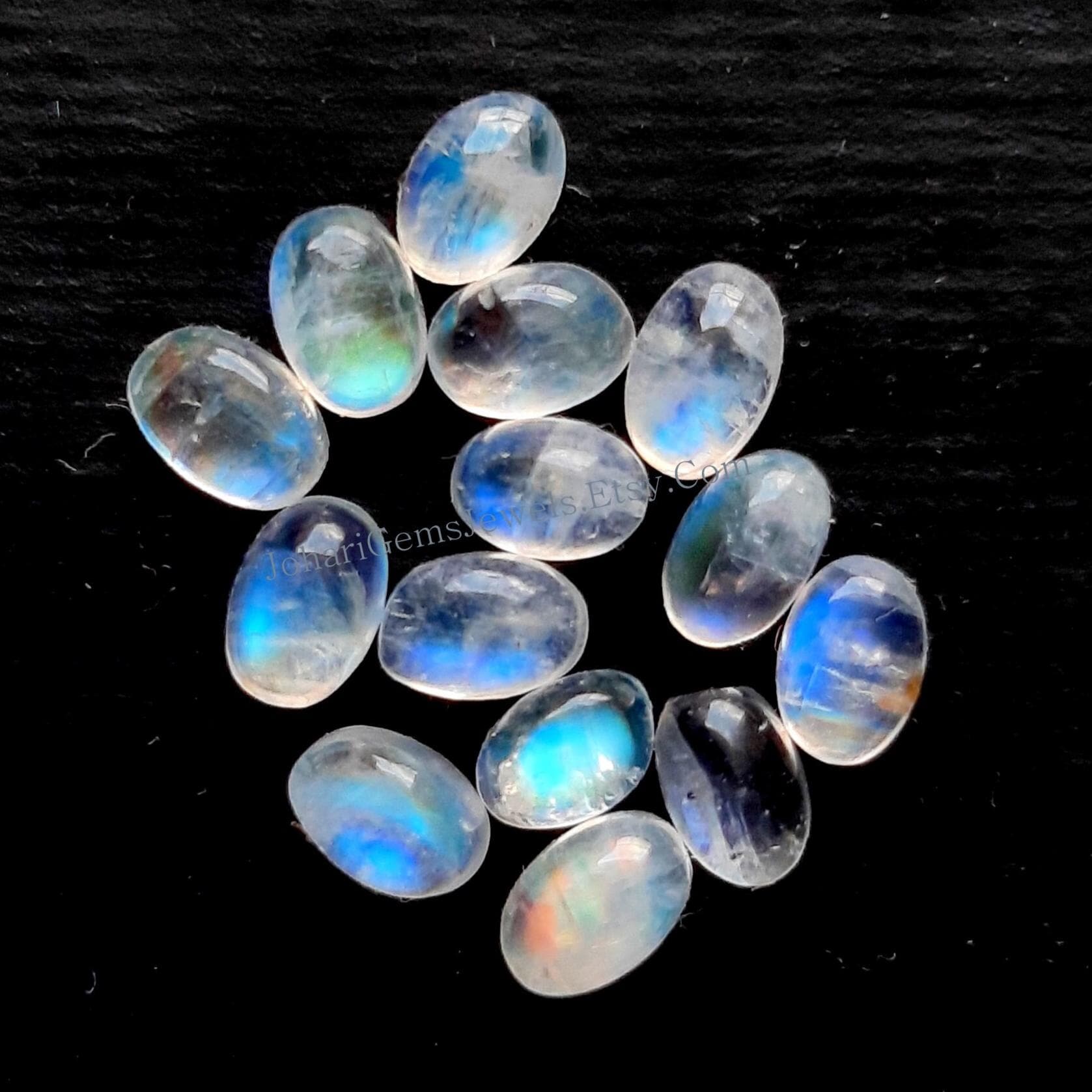 Rainbow Moonstone Calibrated Cabochon Gemstone 15 Pieces Lot, AAA+ Natural Rainbow Moonstone With Flat Back For Jewelry Making
