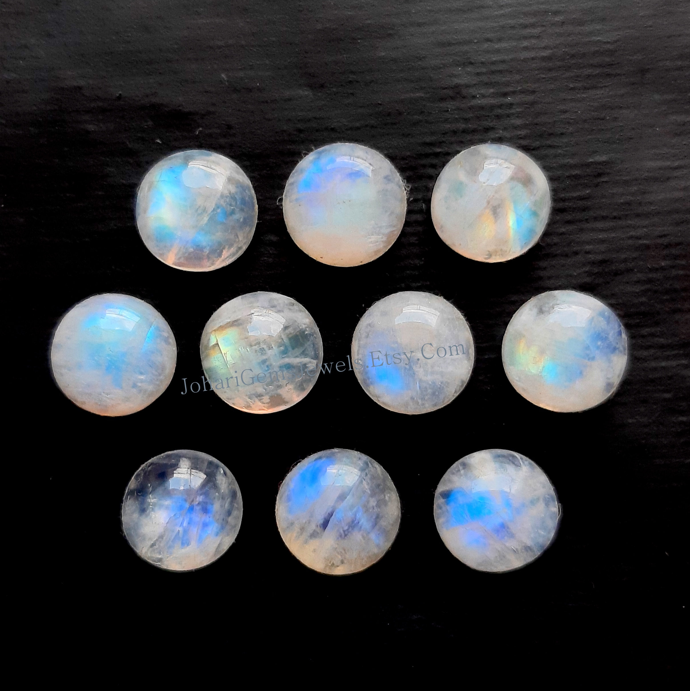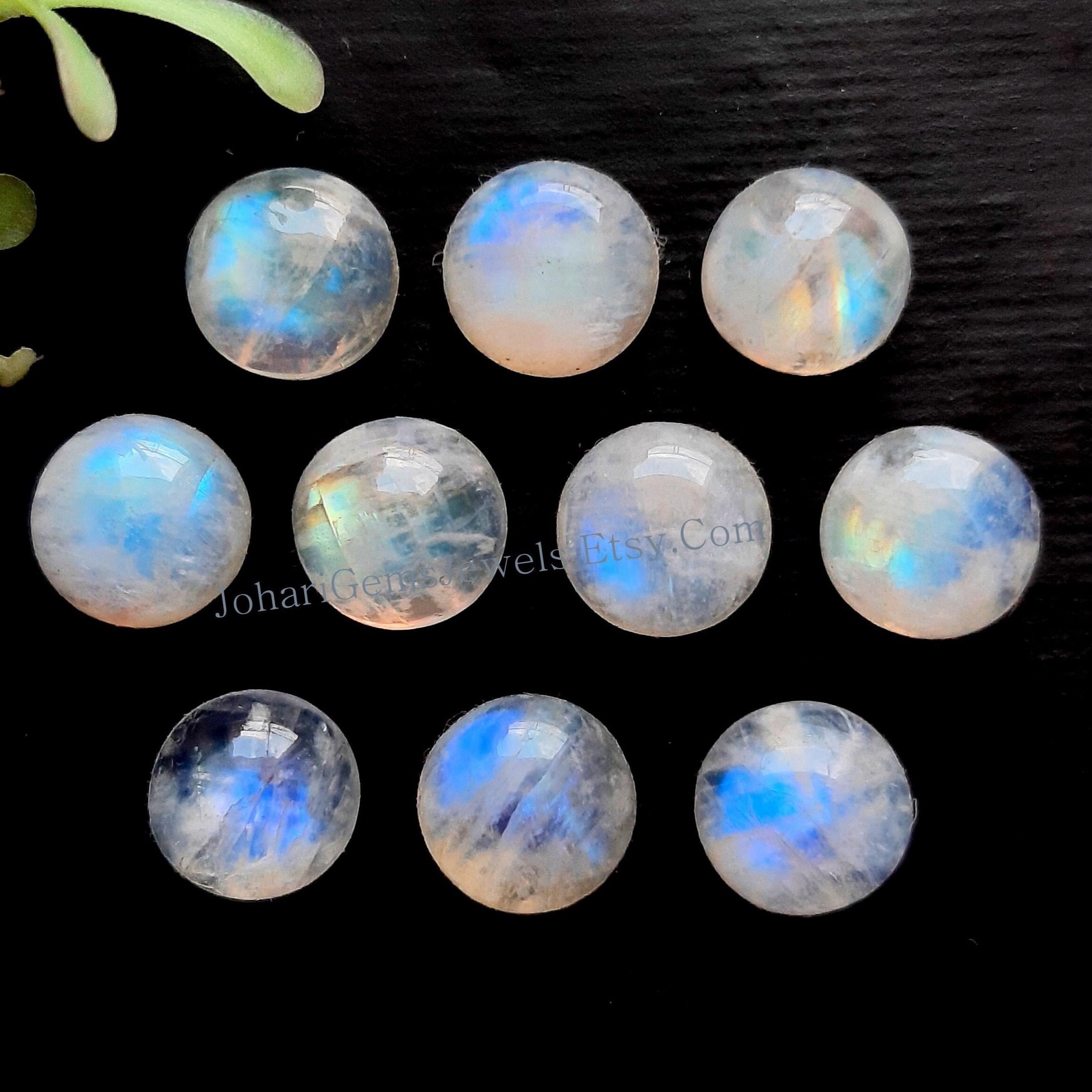 Rainbow Moonstone Calibrated Cabochon Gemstone 10 Pieces Lot, AAA+ Natural Rainbow Moonstone With Flat Back For Jewelry Making