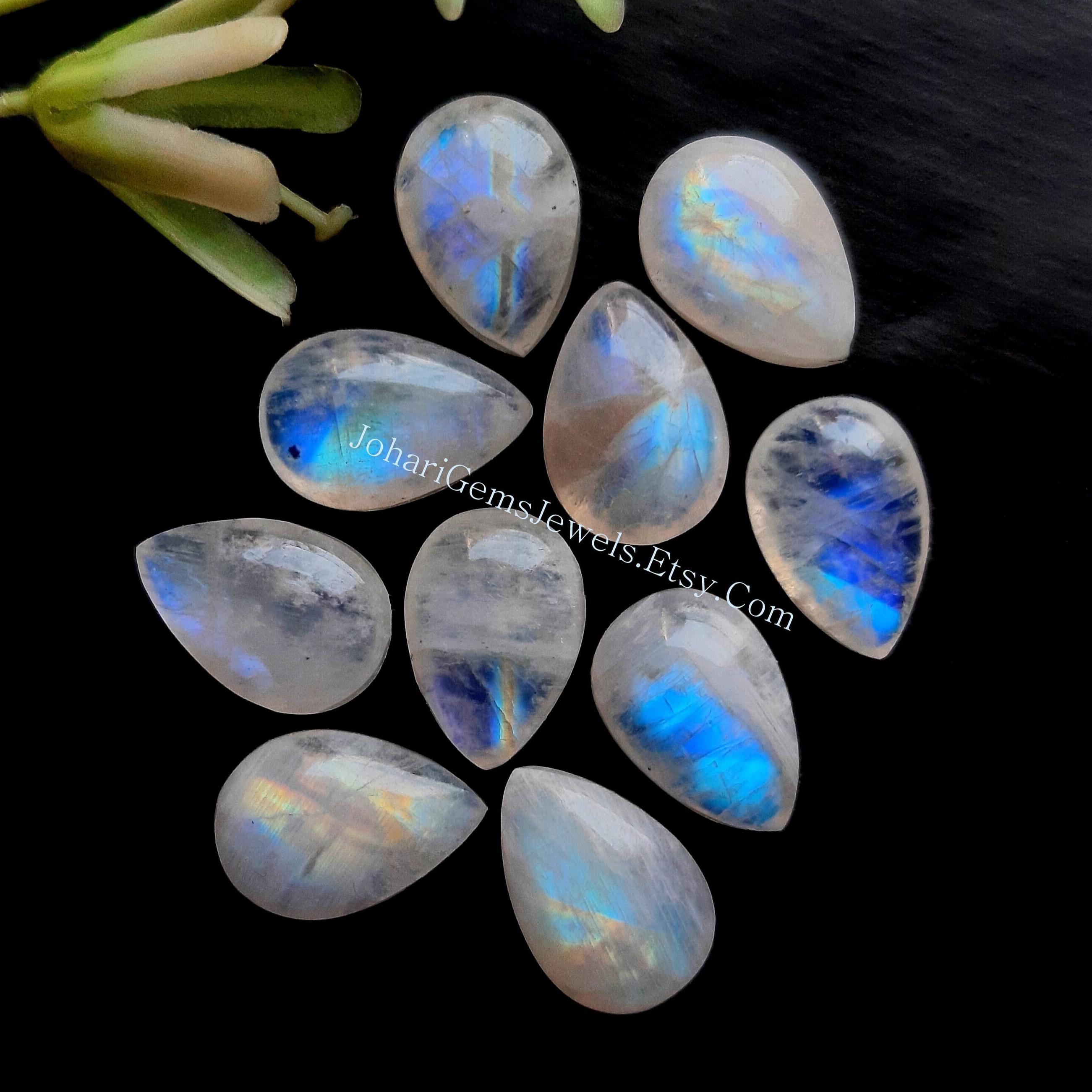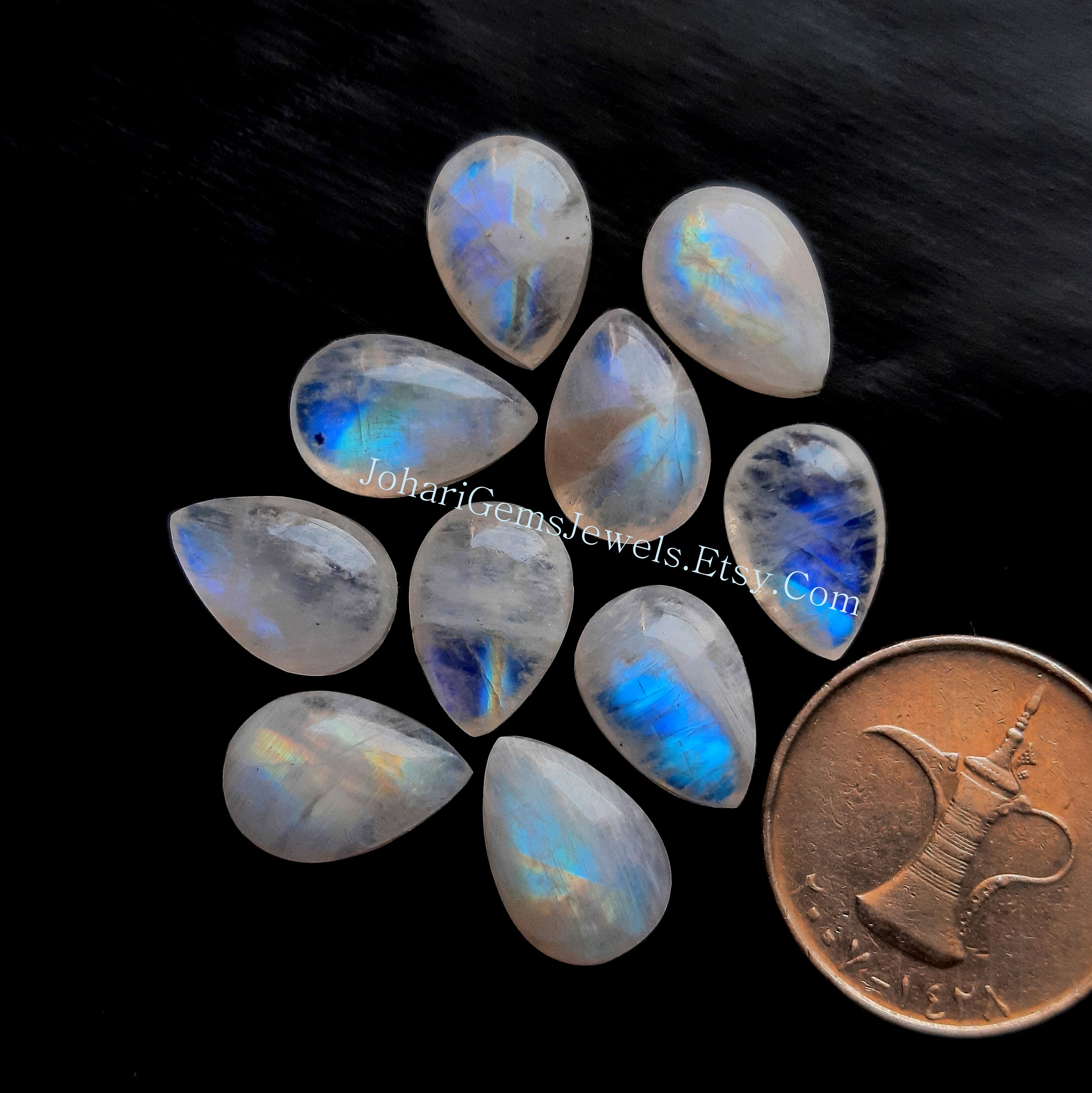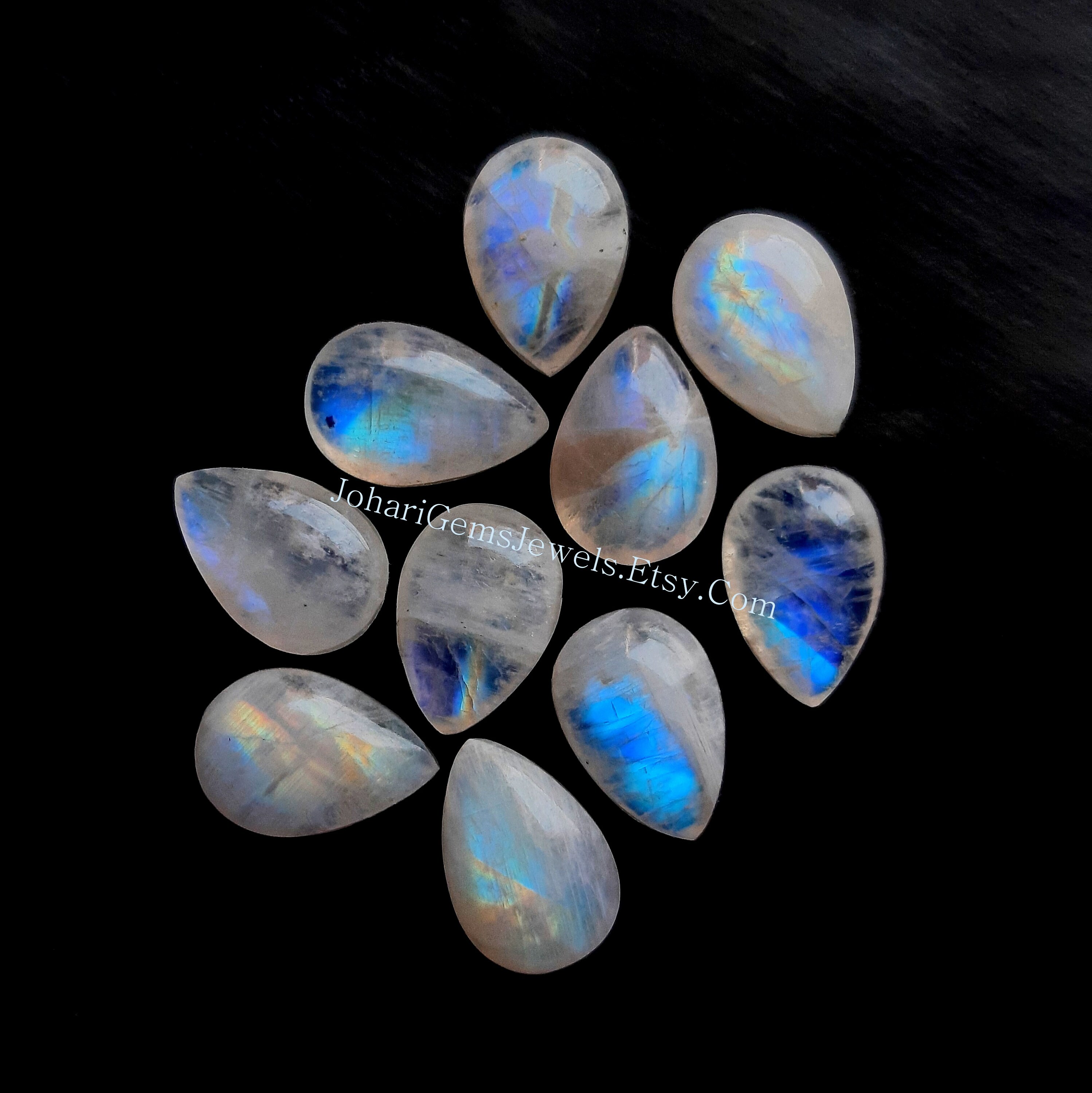 Selected Rainbow Moonstone 10X14 MM Pear Gemstone Cabochon 10 Pieces Lot For Jewelry Making