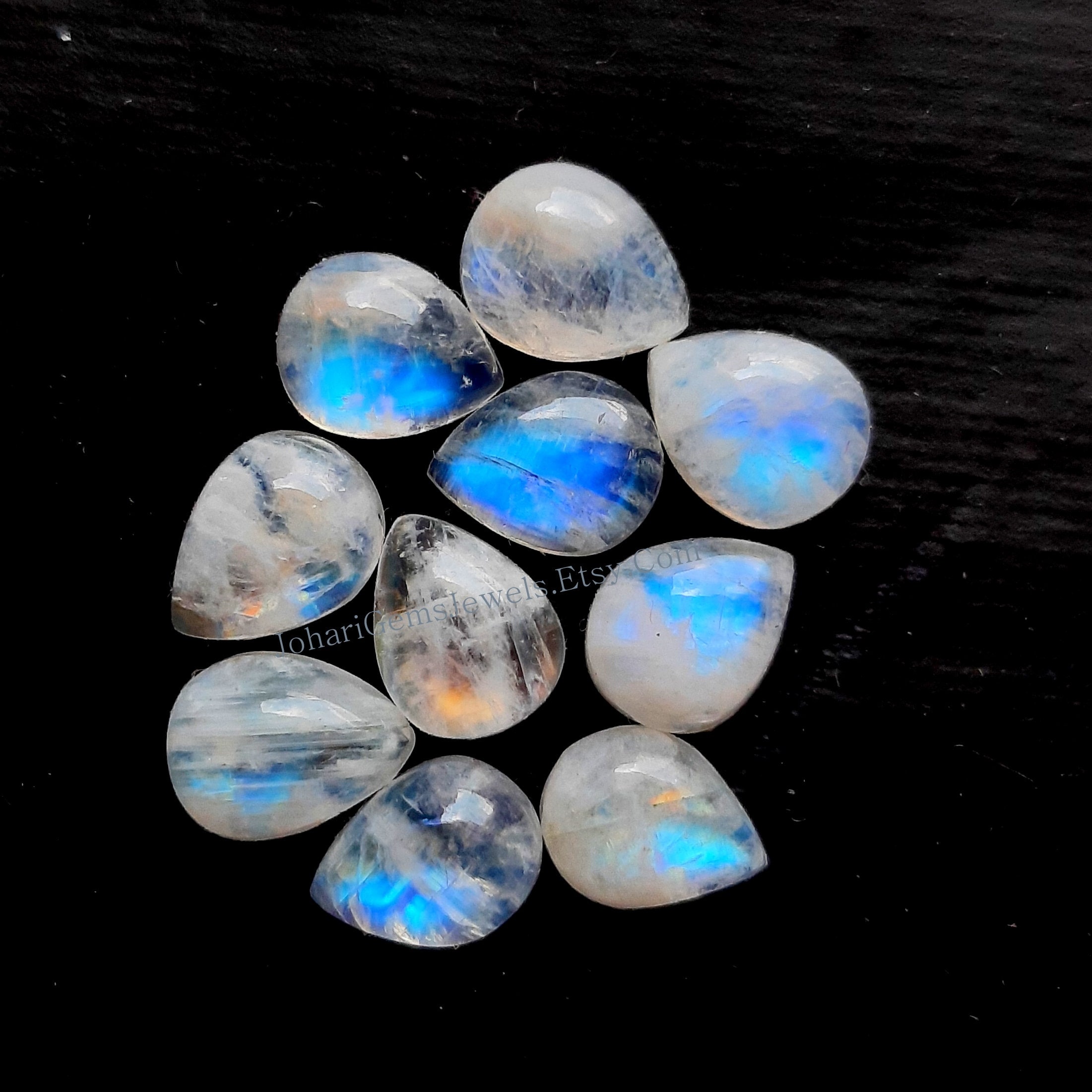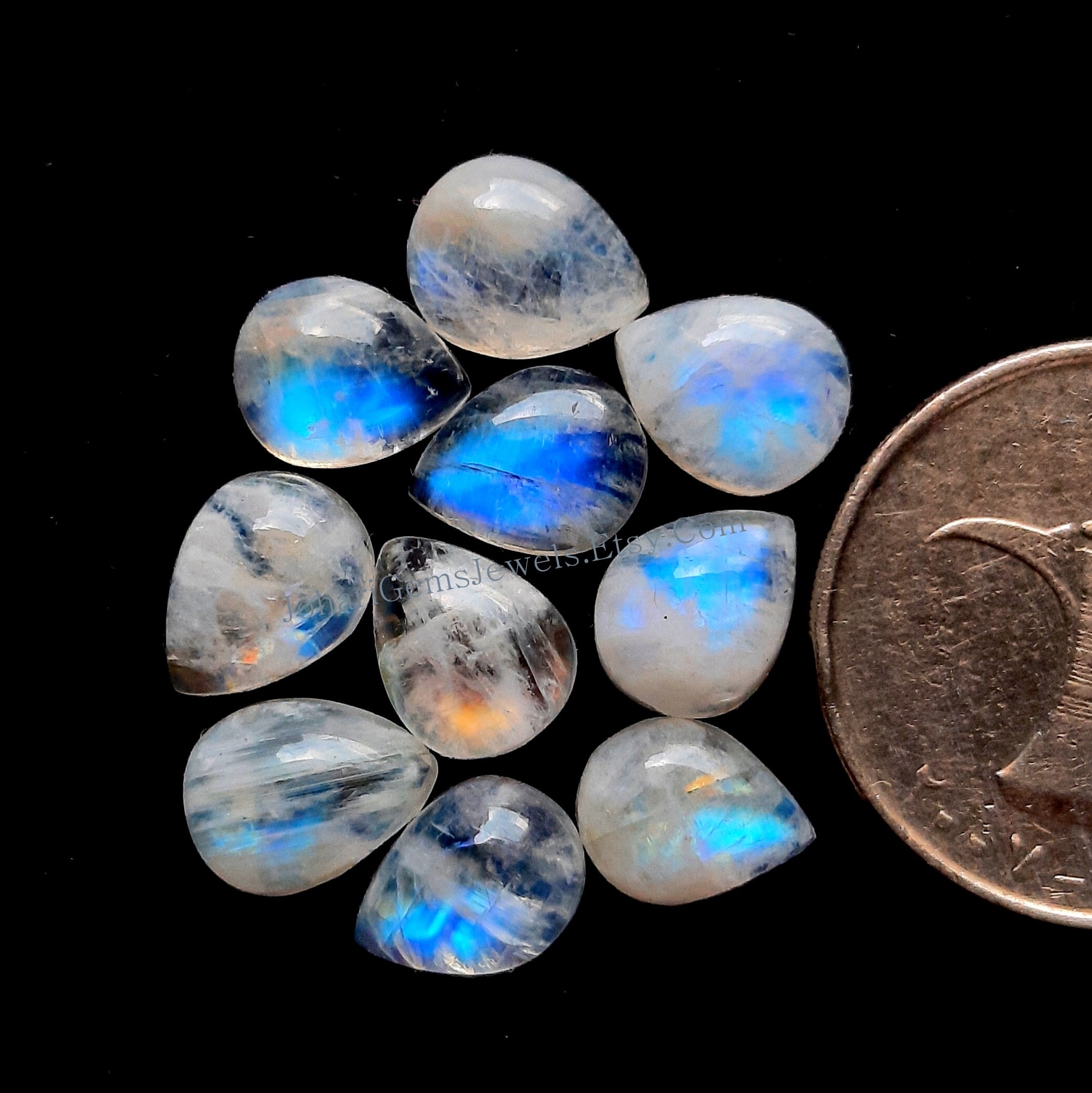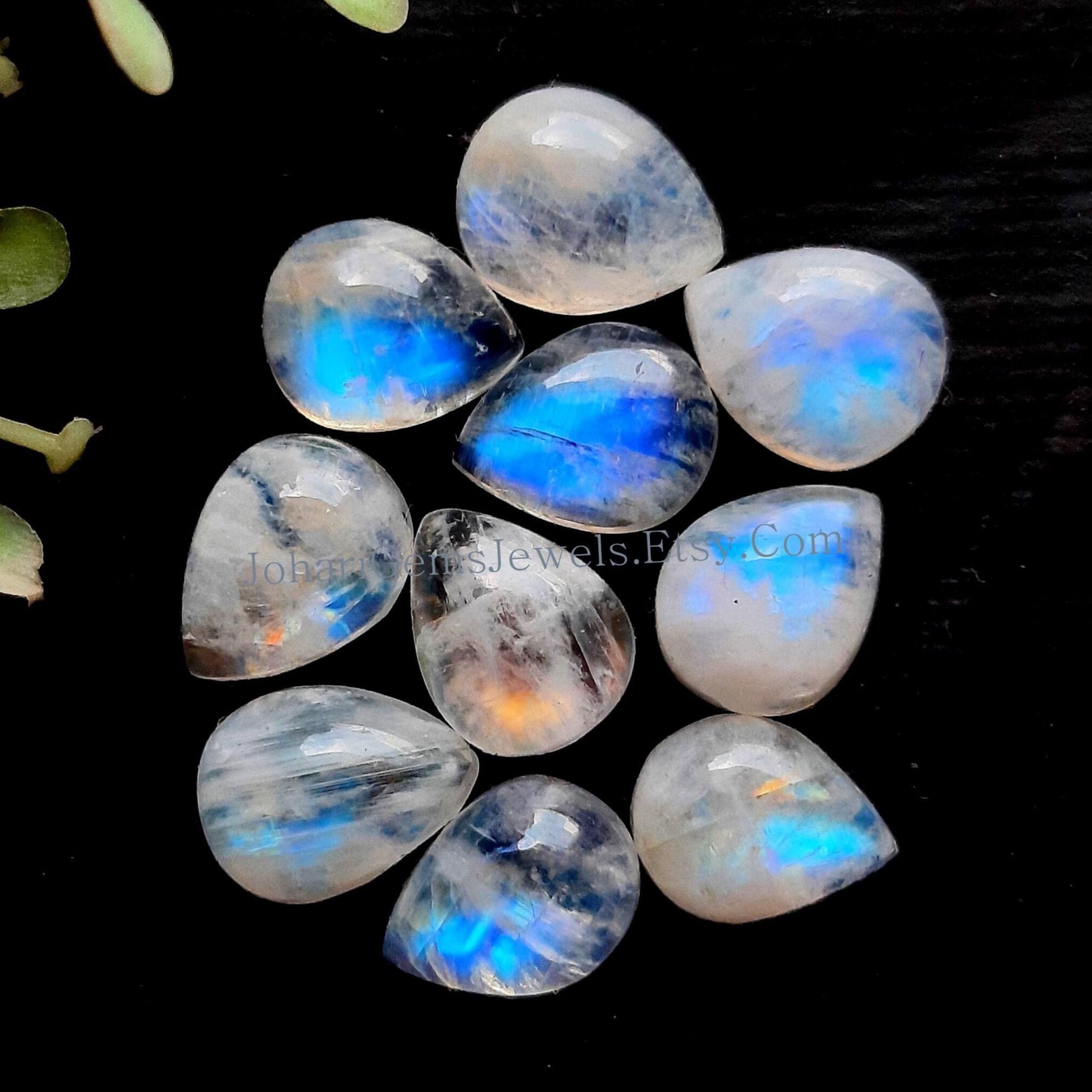 Rainbow Moonstone Calibrated Cabochon Gemstone 10 Pieces Lot, AAA+ Natural Rainbow Moonstone With Flat Back For Jewelry Making