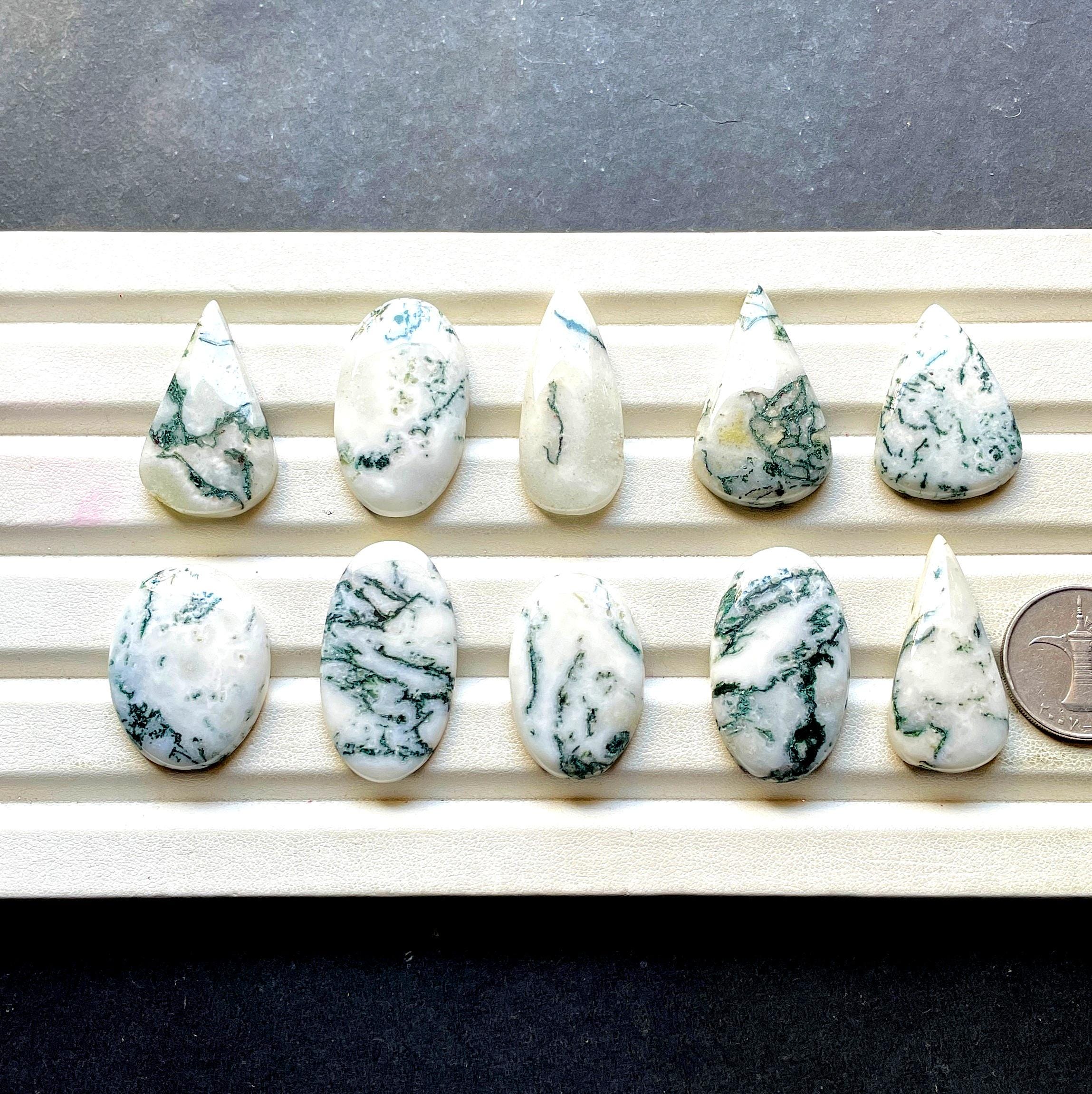 TREE MOSS Agate Cabochon Loose Gemstone For Jewelry Making, AAA+ Natural Tree Moss Agate Cabochon For Wire Wrap