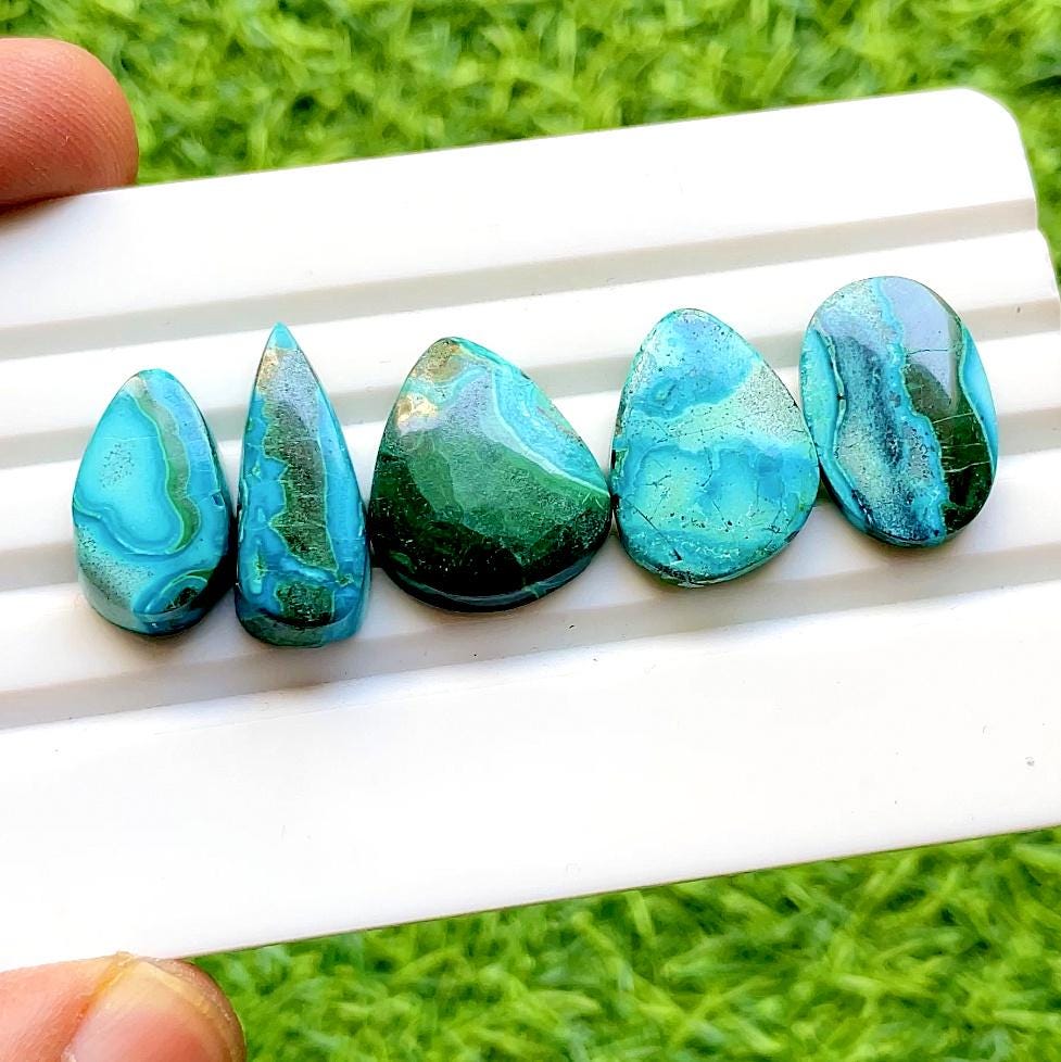 5 Pieces AAA+ Chrysocolla Malachite Cabochon for Jewelry Making, AAA+ Natural Chrysocolla Malachite Cabochon Lot For Handmade Jewelry