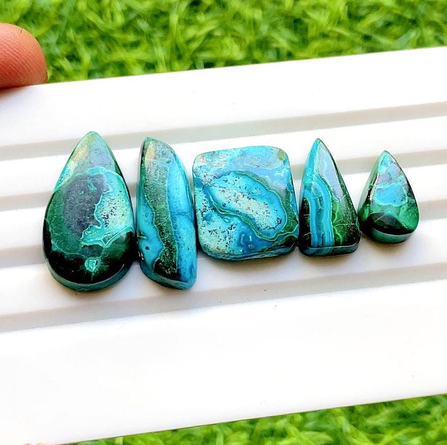 5 Pieces AAA+ Chrysocolla Malachite Cabochon for Jewelry Making, AAA+ Natural Chrysocolla Malachite Cabochon Lot For Handmade Jewelry
