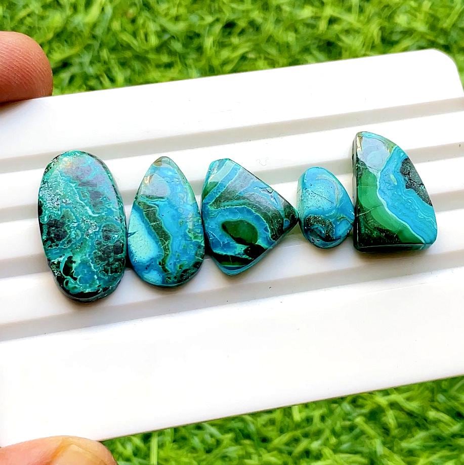 5 Pieces AAA+ Chrysocolla Malachite Cabochon for Jewelry Making, AAA+ Natural Chrysocolla Malachite Cabochon Lot For Handmade Jewelry