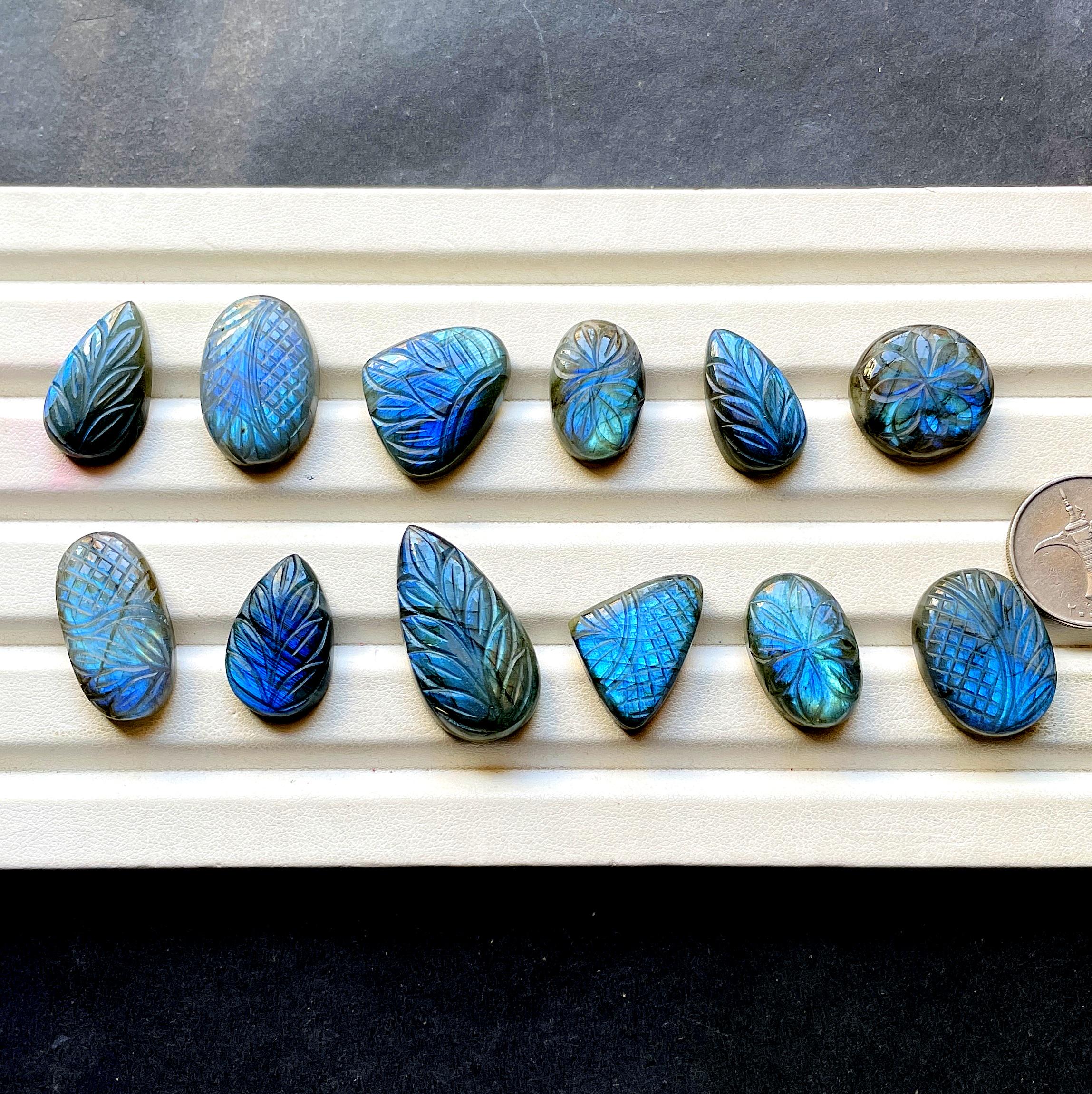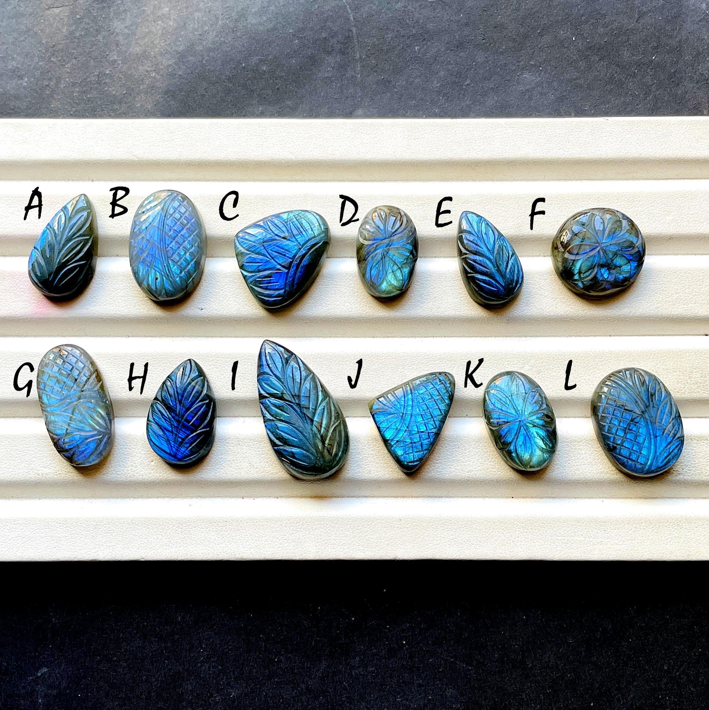 Blue Labradorite Carving Cabochon Loose Gemstone For Jewelry Making, AAA+ Natural Labradorite Carving Gemstone For Wire Wrap