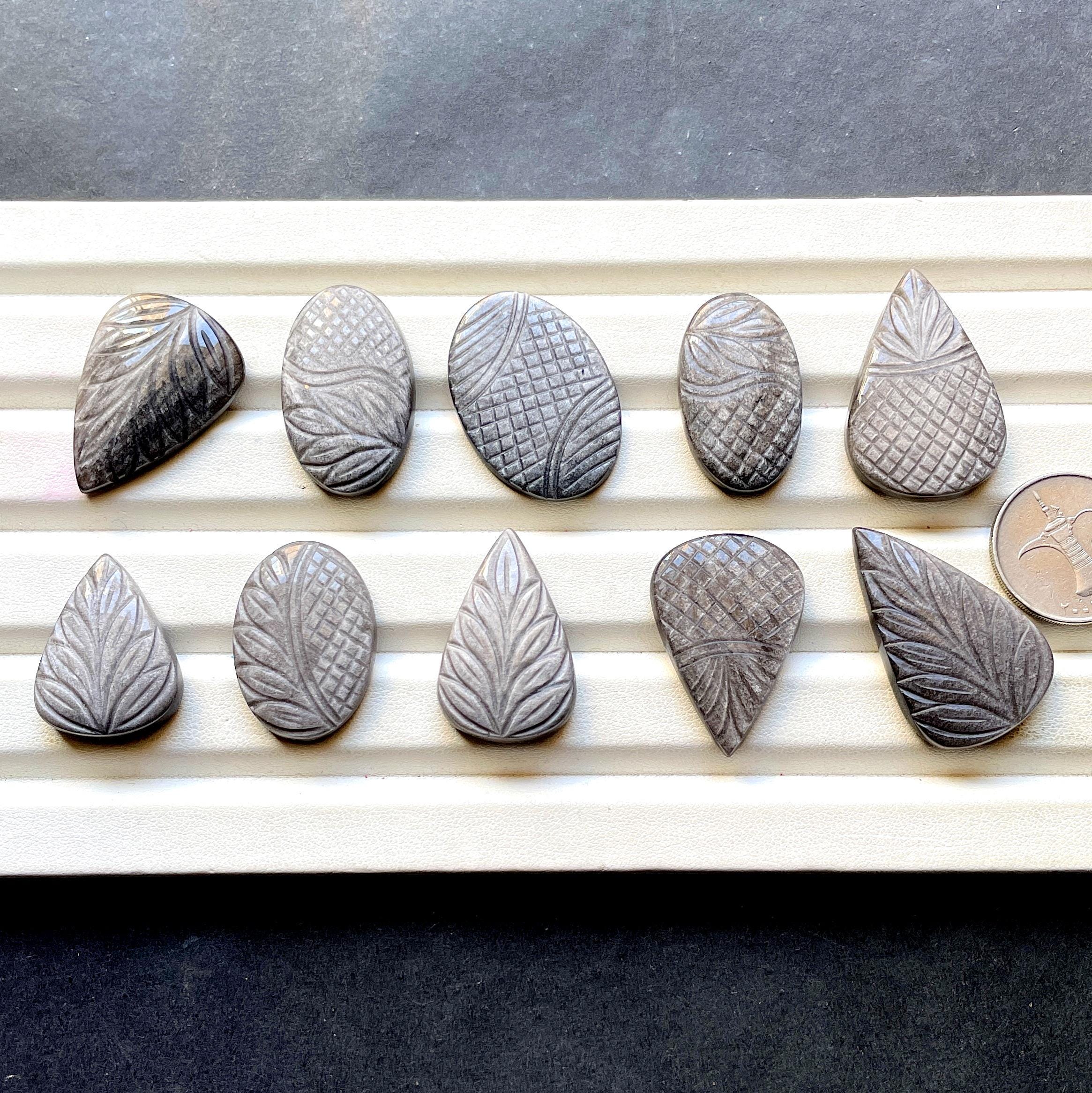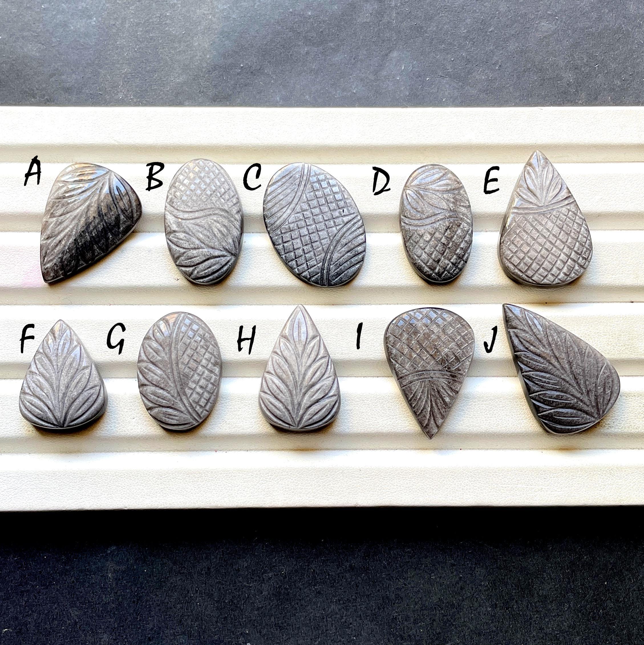 Silver Sheen Obsidian Carving Cabochon Loose Gemstone For Jewelry, AAA+ Natural Silver Sheen Obsidian Gemstone For Wire Wrap