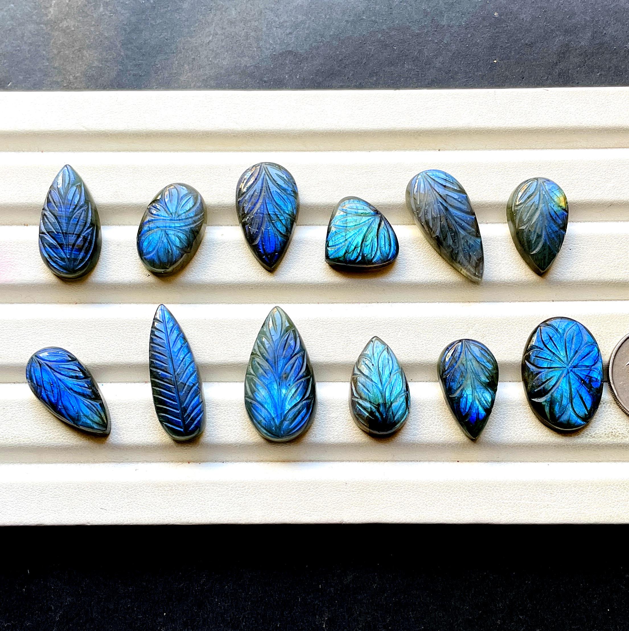 Blue Labradorite Carving Cabochon Loose Gemstone For Jewelry Making, AAA+ Natural Labradorite Carving Gemstone For Wire Wrap