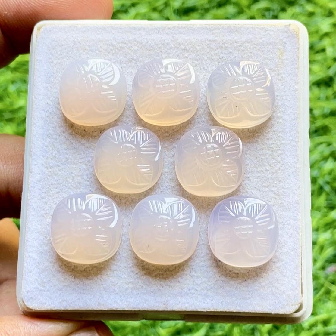 Rose Quartz Color Chalcedony 14 MM Cushion Shape Hand Carving Gemstone With Flat Back 6 Pieces Lot, AAA+ Chalcedony Gemstone For Jewelry