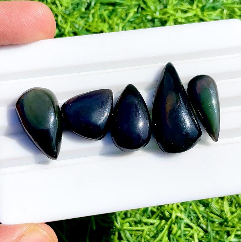 5 Pieces AAA+ Rainbow Obsidian Cabochon for Jewelry Making, AAA+ Natural Rainbow Obsidian Cabochon Lot For Handmade Jewelry