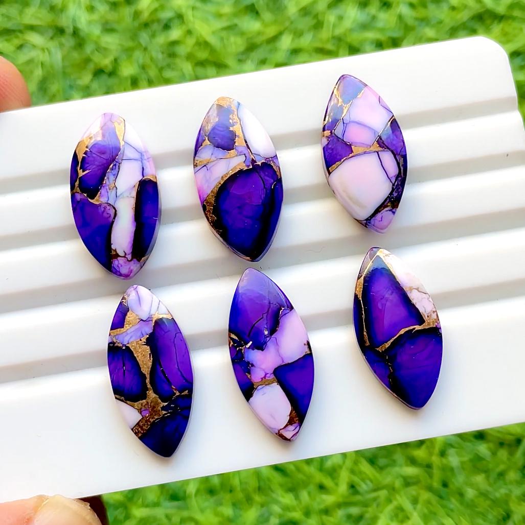 NEW Purple Oyster Copper Turquoise 24x12 MM Marquise Shape Calibrated Smooth Cabochon With Flat Back Gemstone 6 Pieces Lot For Handmade Jewelry