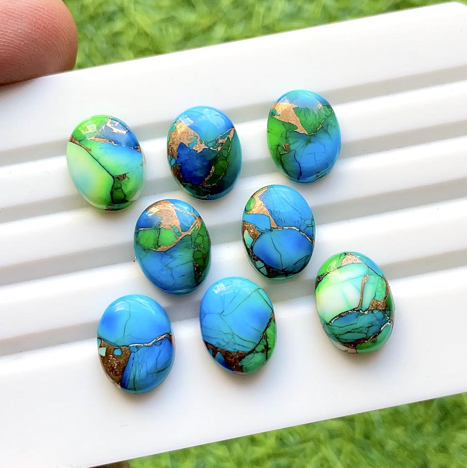 NEW Green Oyster Copper Turquoise 10x14 MM Oval Shape Calibrated Smooth Cabochon With Flat Back Gemstone 8 Pieces Lot For Handmade Jewelry