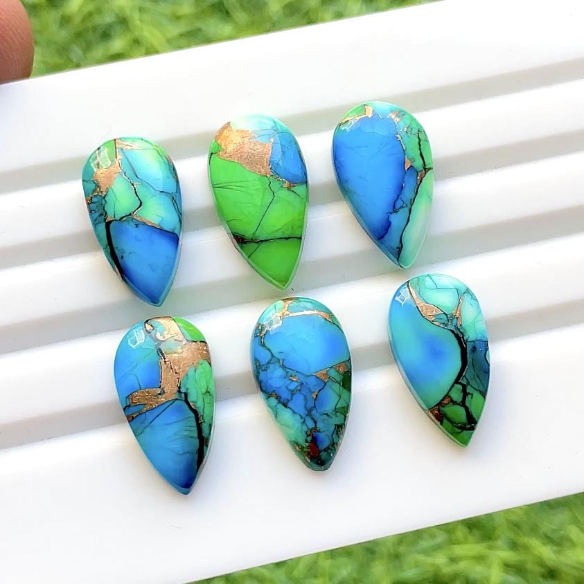NEW Green Oyster Copper Turquoise 18x10 MM Pear Shape Calibrated Smooth Cabochon With Flat Back Gemstone 6 Pieces Lot For Handmade Jewelry